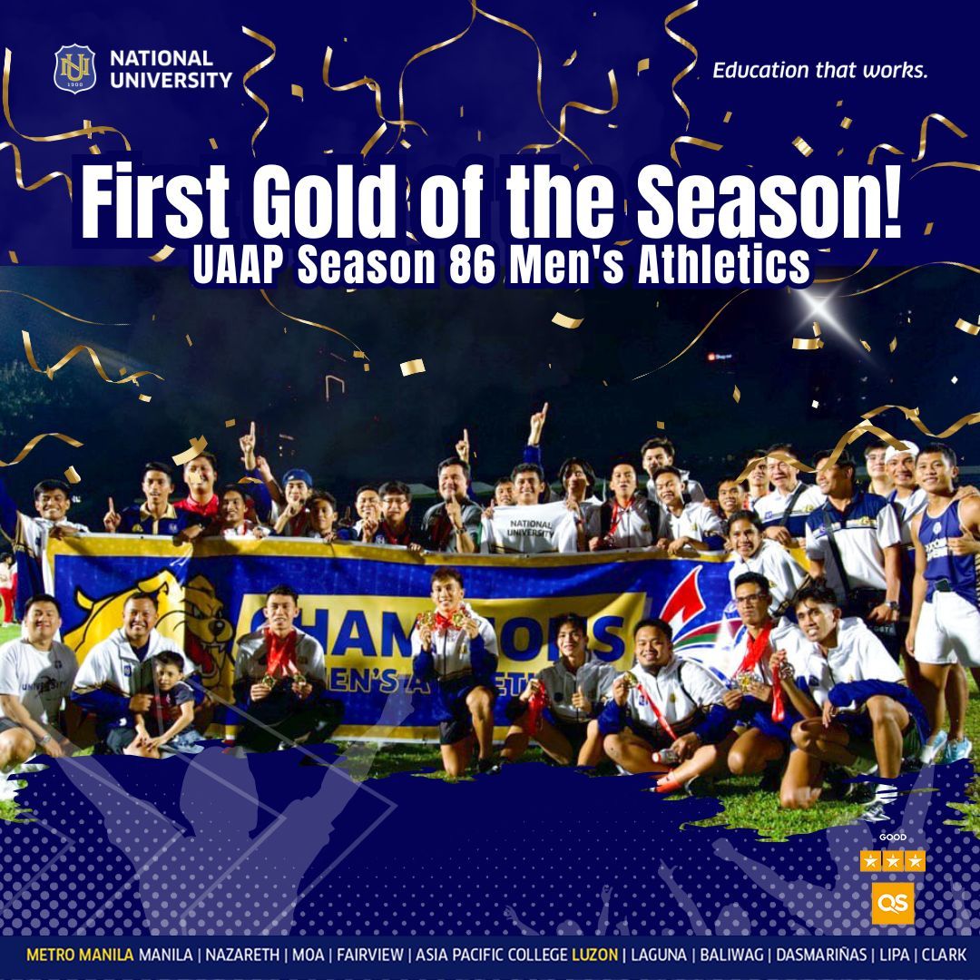 National University emerges as champions in UAAP Season 86 Men’s Athletics. Congratulations to our coaches and team for dominating in events like running, jumping, and throwing. Special thanks to Coach Fernando Dagasdas, Henry Chaneco, Elmer Reyes, Domingo Cabradilla Jr., and the dedicated coaching staff. Shoutout to Team Manager Engr. Don Lee for his crucial role!