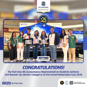 ICYMI:NU Fairview proudly celebrates the remarkable achievement of its BS Accountancy students—Abigail Feliciano, Mariel Fernando, and Patrick Taborada of Team Panic! At the Discount—for earning 2nd Runner-Up (Senior Category) at the Grand Nationalian Cup 2026 held at SM City Manila.The Grand Nationalian Cup is a prestigious nationwide accounting competition that gathers the brightest minds from all NU campuses, highlighting excellence, technical competence, analytical rigor, and teamwork among future accounting professionals. Competing against top contenders from across the country, our students […]