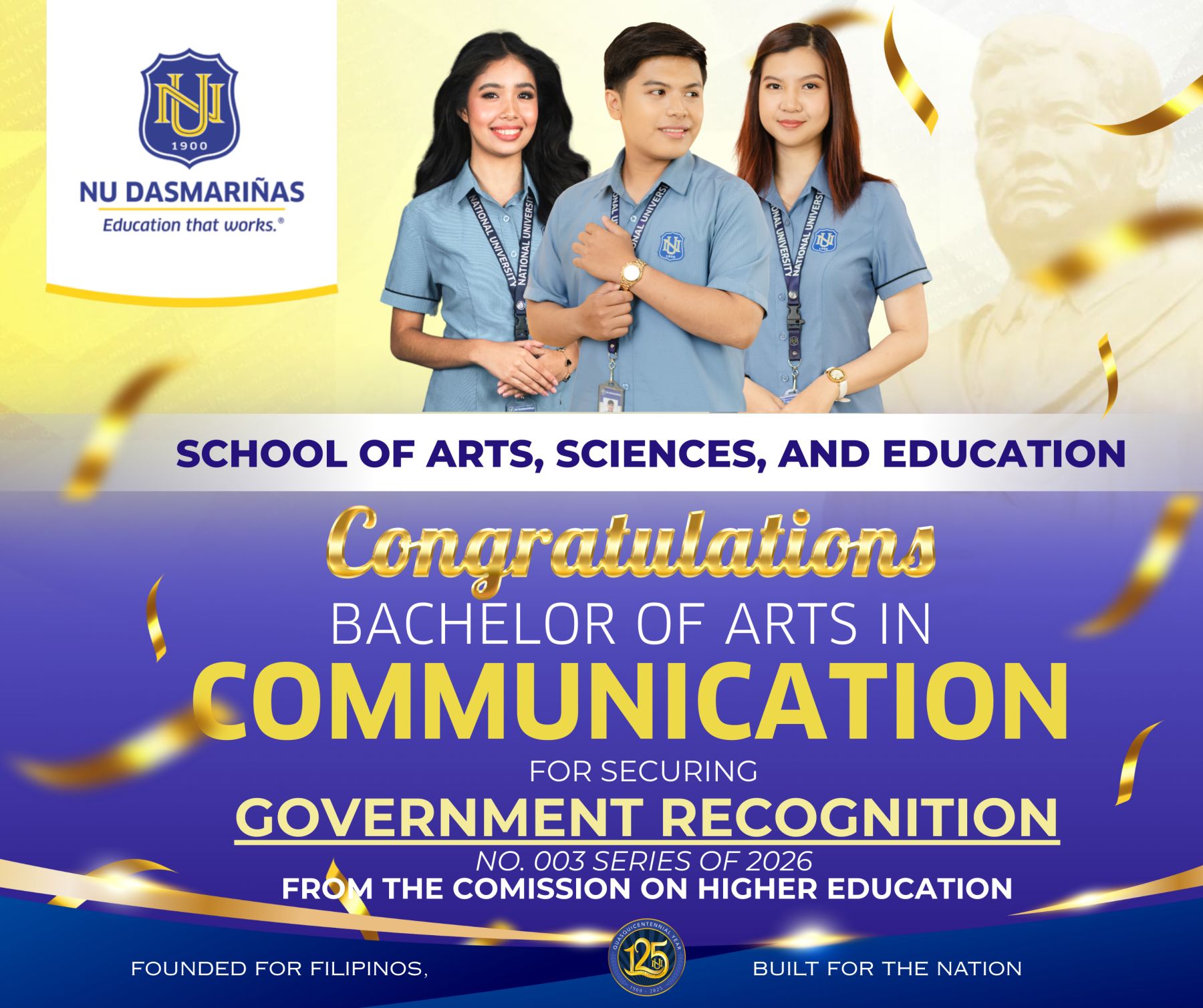 For more than 125 years, National University has been recognized for its academic excellence which has formed the country’s most successful movers and shakers in various industries.