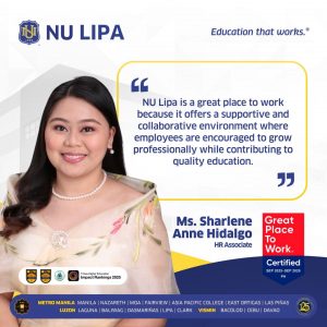 Discover what makes NU Lipa a place where passion meets purpose. In this feature, Ms. Sharlene Anne Hidalgo shares her insights on how the university cultivates a culture rooted in collaboration, continuous professional growth, and a strong commitment to delivering quality education. At NU Lipa, it’s not just about work—it’s about being part of a community that empowers individuals, values contributions, and inspires everyone to grow together.