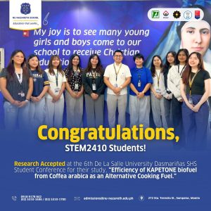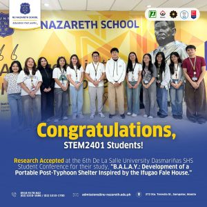 As they take part in this prestigious conference, the NU Nazareth School community proudly celebrates their achievement and wishes them success in sharing their work with fellow young researchers and educators.