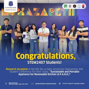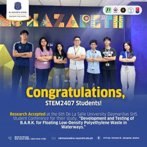 NU Nazareth School continues to uphold its commitment to academic excellence as its Senior High School STEM students earn acceptance to present their research at the 6th De La Salle University Dasmariรฑas SHS Student Conference, happening on April 15โ16, 2026.
