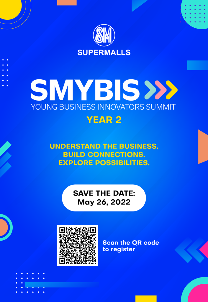 Calling on our graduating students and alumni! Do you aspire to innovate the future and make an impact on our communities? Join the SM Young Business Innovators Summit on May 26, 2022. Get a chance to explore a world of possibilities in SM Supermalls! To register for the summit, click the link below or scan the QR code.
