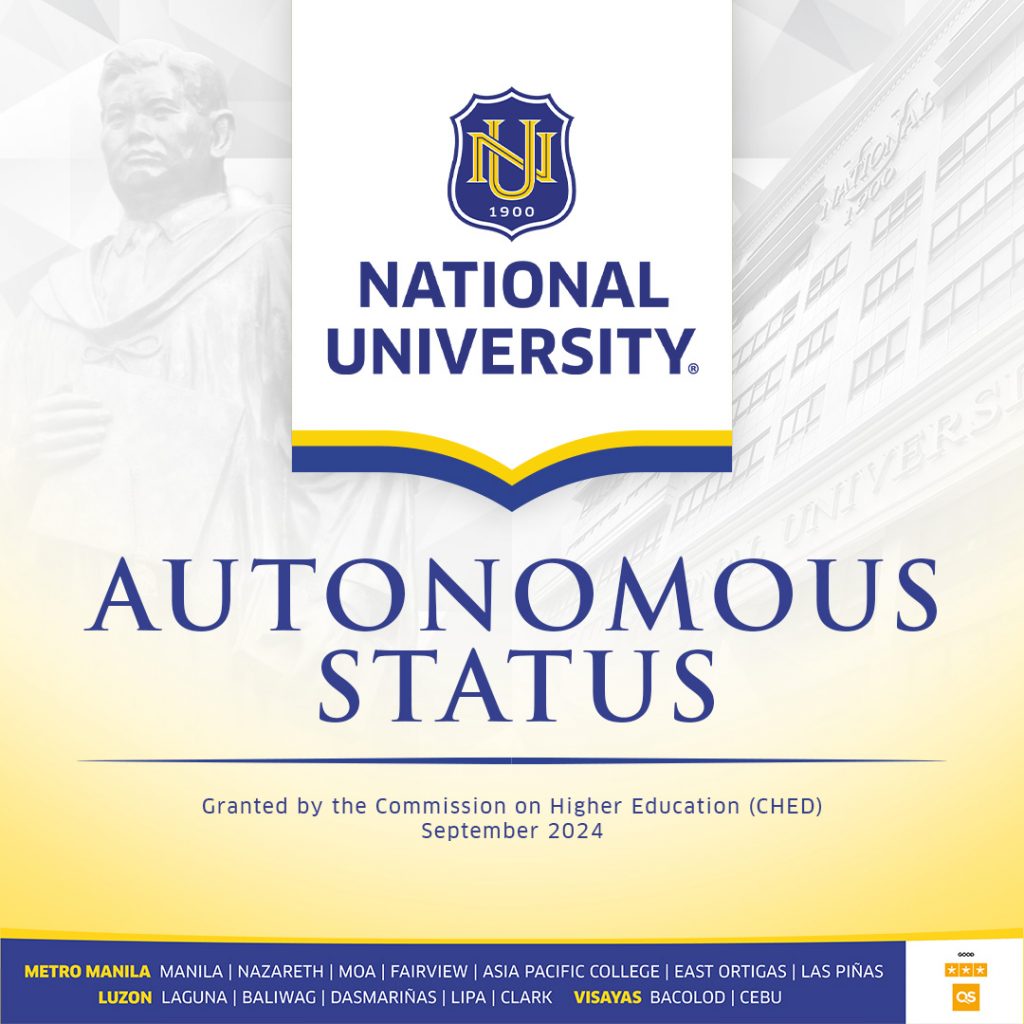 The Commission on Higher Education recognizes NU’s effort in contributing to Philippine education by retaining its Autonomous Status, effective September 16, 2024 to September 15, 2027.