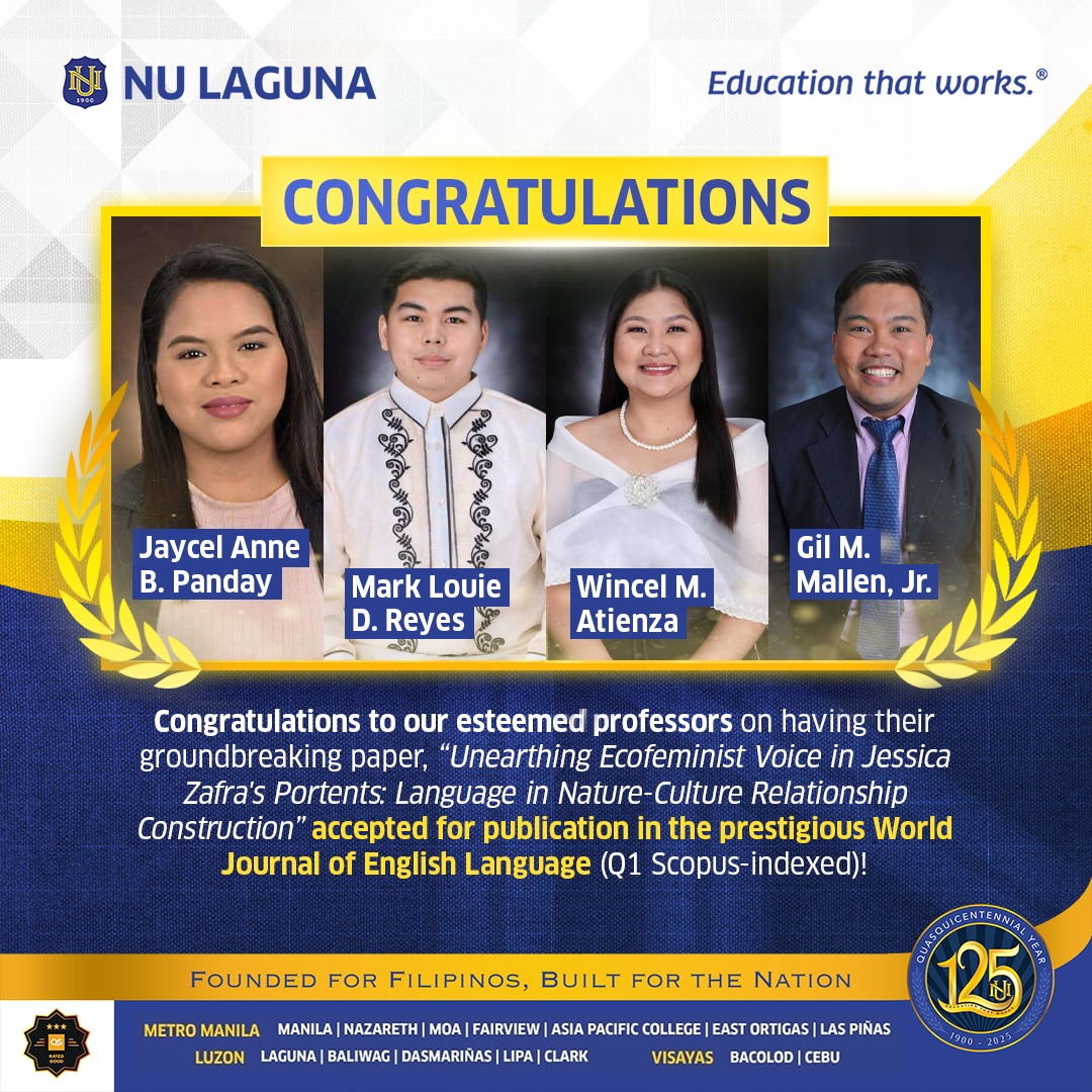 This significant achievement not only showcases the depth of their academic inquiry but also reinforces NU Laguna’s unwavering commitment to advancing research that challenges perspectives and contributes meaningfully to global discourse in language, literature, and cultural studies.