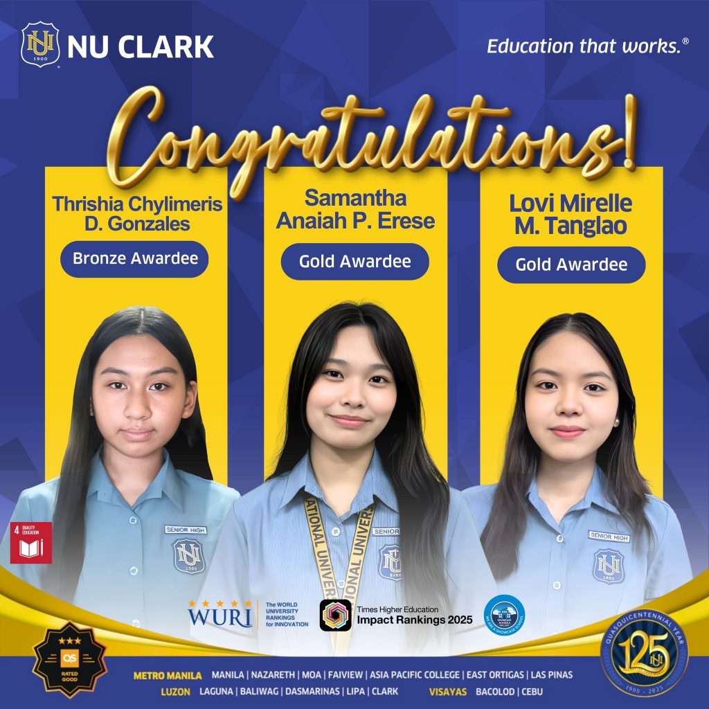 NU Clark also recognizes the efforts of their coaches, Maβam Hazellene Bondoc and Maβam Crystal Dela Cruz, and the Synergy of Bulldozers (ABM) as the lead organization, under the supervision of Mr. Jeric P. David and Maβam Graciel C. Escubio.