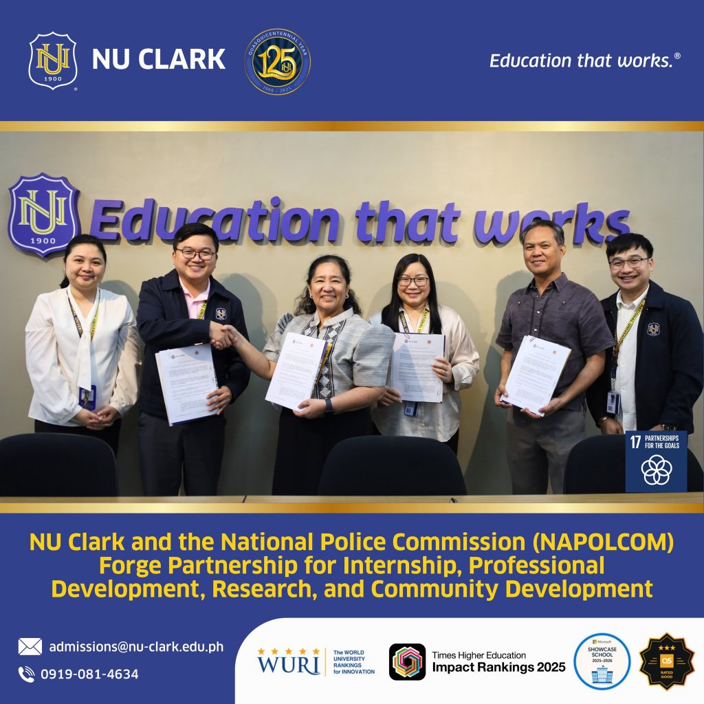 National University Clark (NU Clark) formalized an institutional partnership with the National Police Commission (NAPOLCOM) Regional Office III through the signing of a Memorandum of Agreement (MOA), marking a significant step toward strengthened academic collaboration and community engagement in the region.
