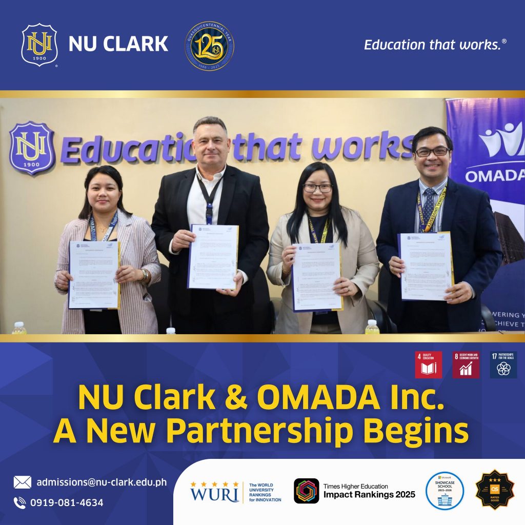 National University Clark (NU Clark) officially entered into a Memorandum of Understanding (MOU) with OMADA One Inc., marking a strategic partnership aimed at strengthening collaboration between the academe and industry.