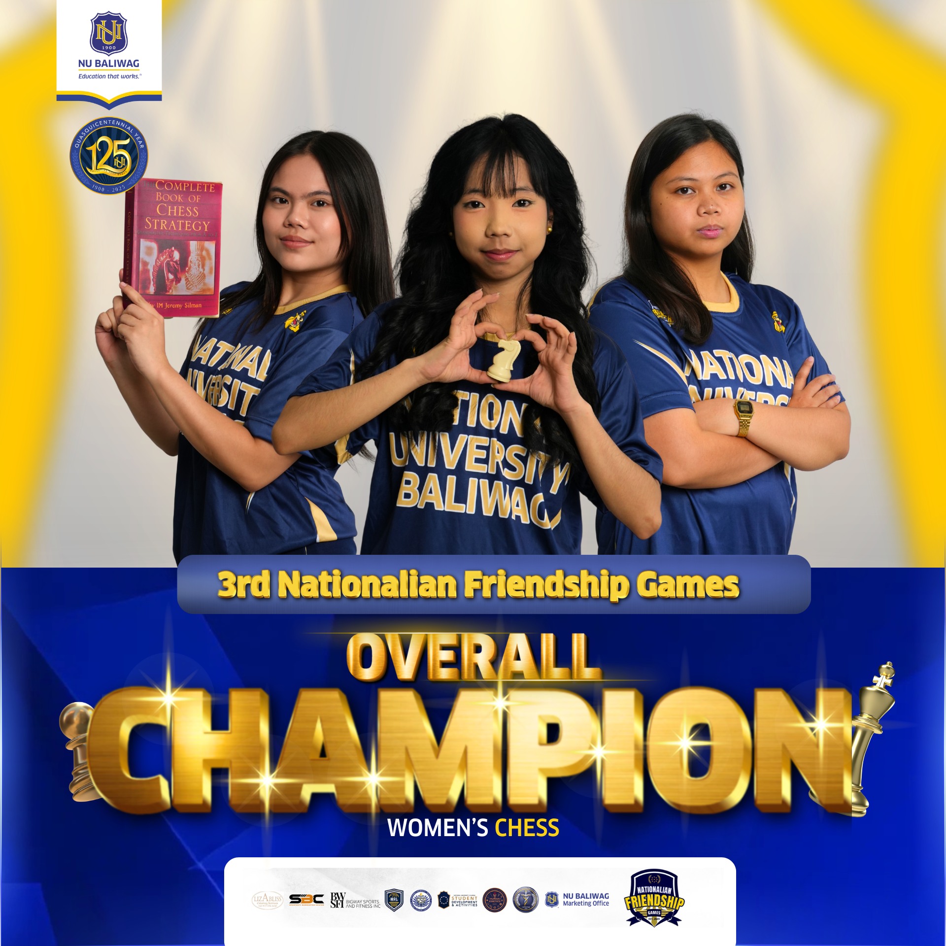BALIWAG, BULACAN โ Another golden victory for NU Baliwag! The Womenโs Chess Team has secured the championship title at the recently concluded Nationalian Friendship Game 2025, showcasing not only strategic brilliance but also the heart and discipline of true Nationalians.