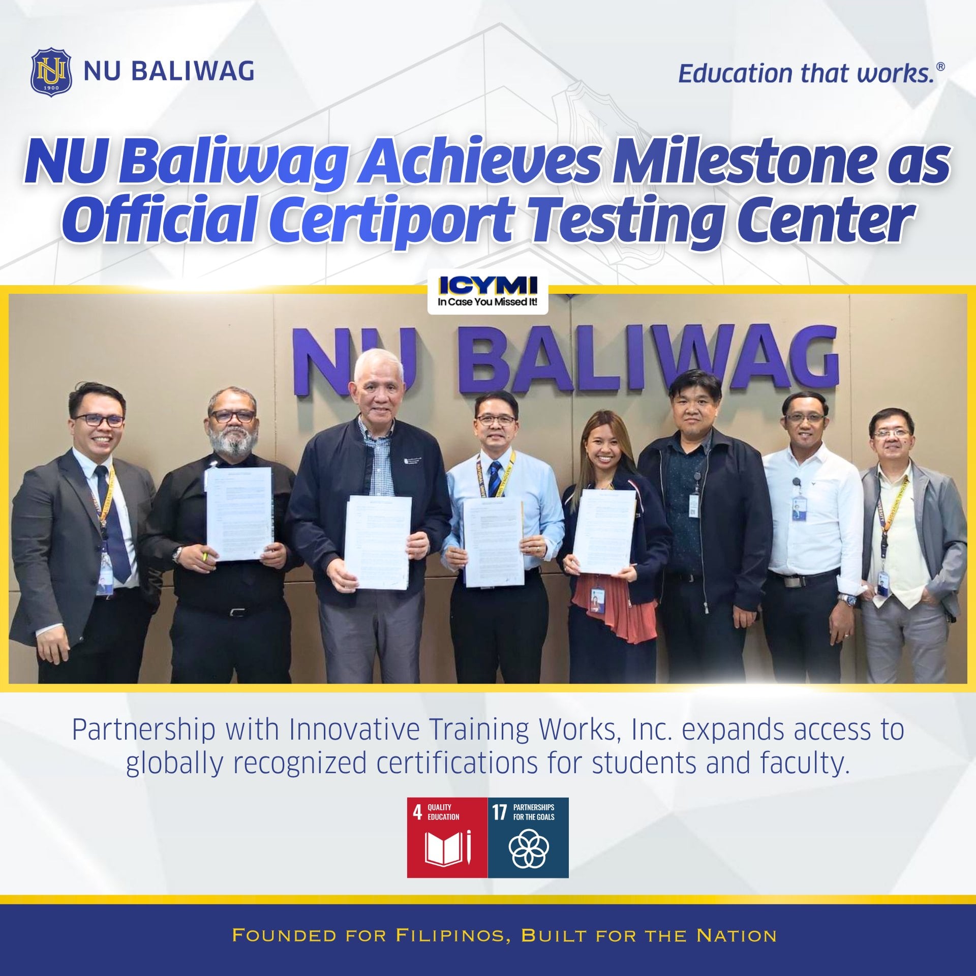 The collaboration reinforces NU Baliwag’s mission to elevate educational quality and strengthen technical competencies by aligning academic programs with current industry standards. It also reflects a shared vision of preparing future professionals with globally competitive skills and credentials—empowering them for both academic success and career readiness.