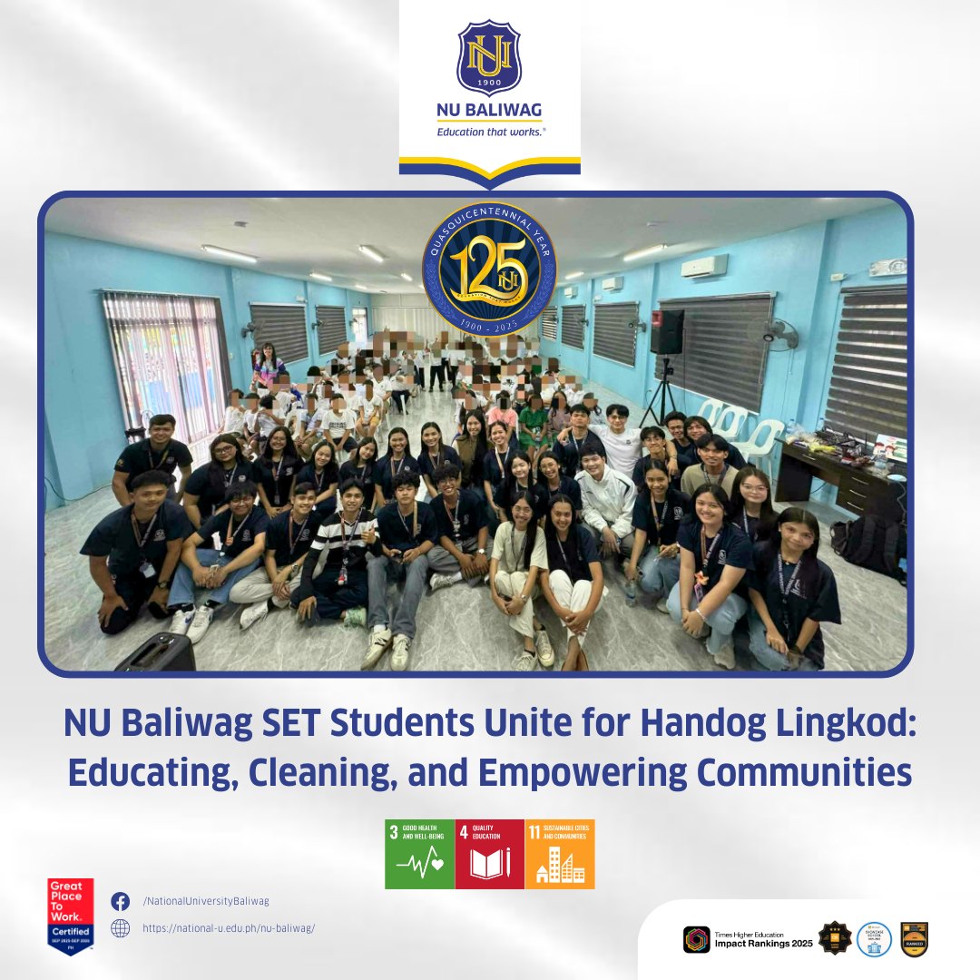 Aligned with global goals on good health and well-being, quality education, sanitation, sustainable communities, climate action, and partnerships, Handog Lingkod reflects NU Baliwag’s dedication to shaping socially responsible leaders who serve with purpose and heart.