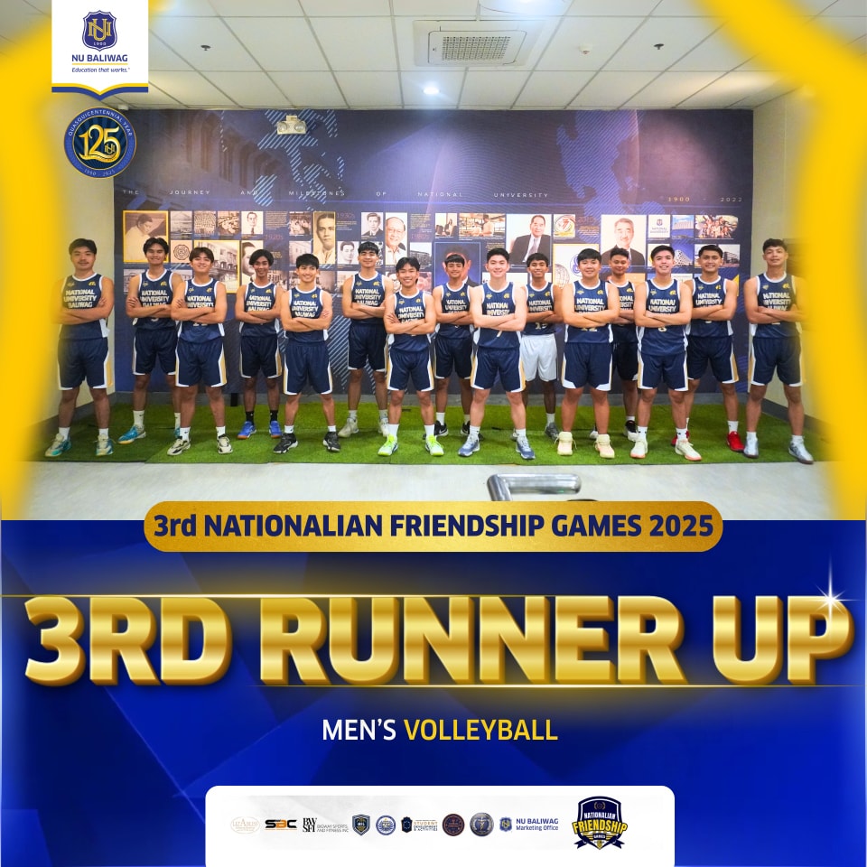 BALIWAG, BULACAN — The NU Baliwag Men’s Volleyball Team has once again proven their skill, teamwork, and resilience by finishing as 3rd Runner-Up in the highly competitive Nationalian Friendship Game. This remarkable accomplishment highlights the team’s hard work, dedication, and passion for the sport.