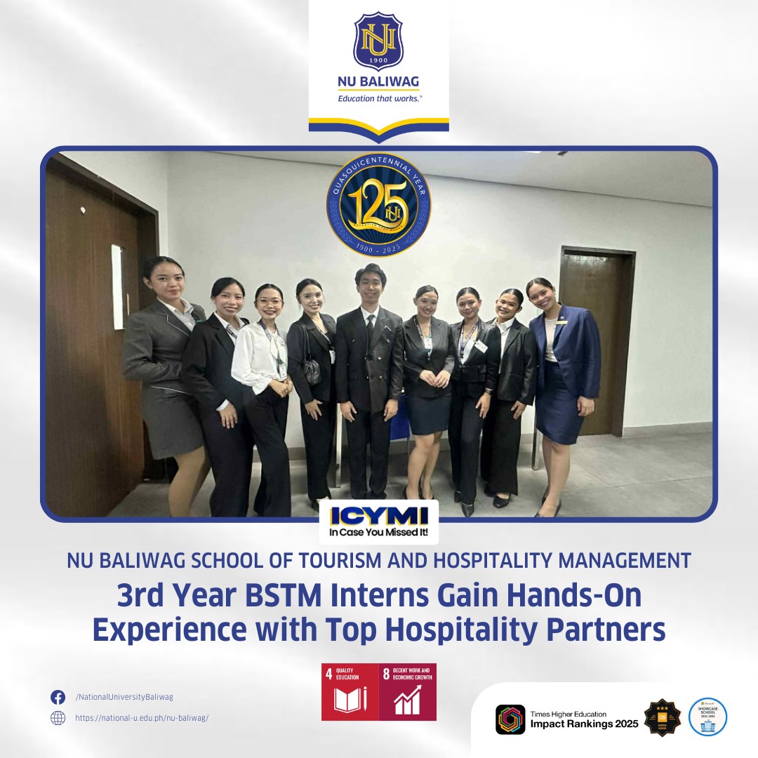 Through this experiential learning approach, NU Baliwag continues to uphold its commitment to producing highly competent, industry-ready graduates who can thrive in the competitive world of tourism and hospitality.