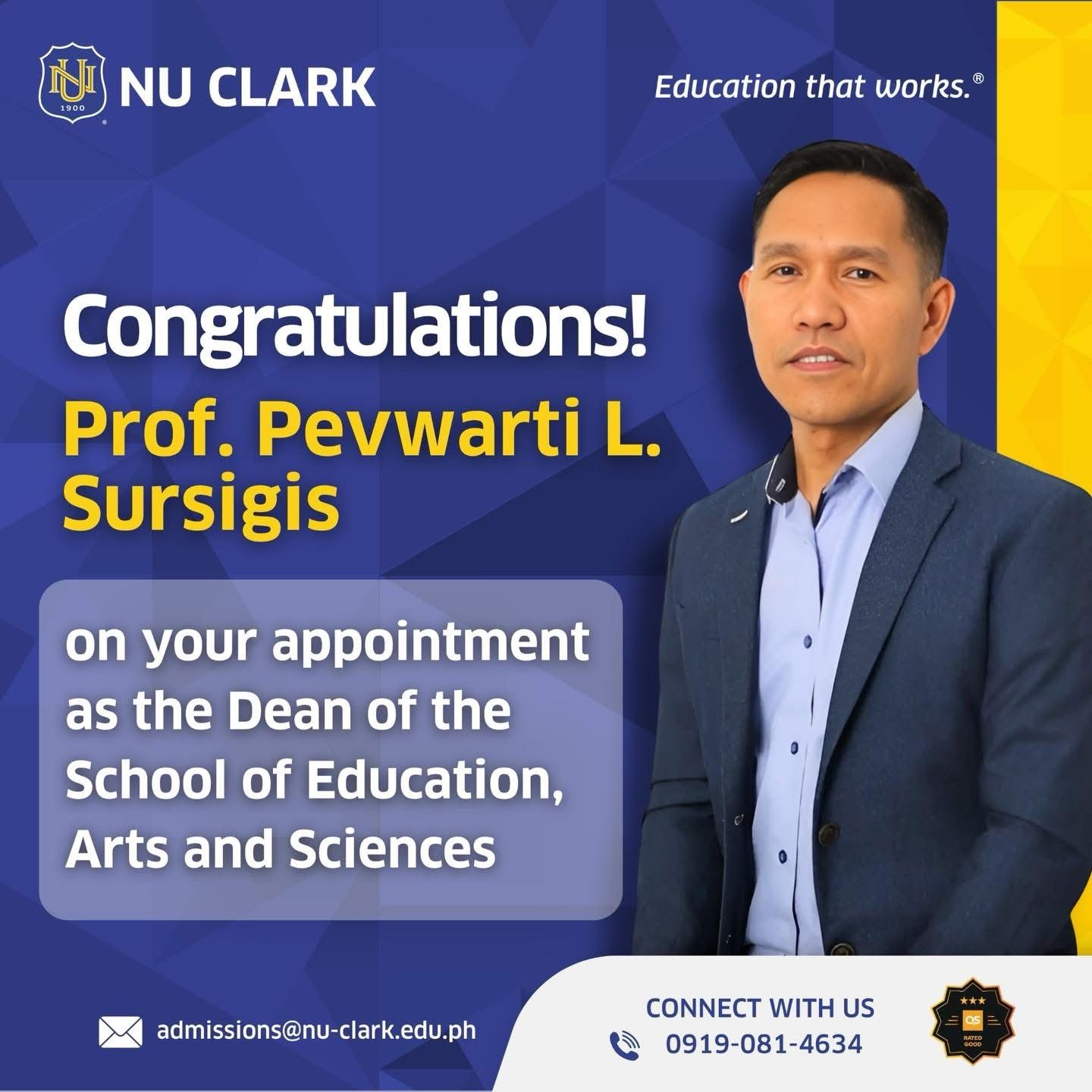 Dean Pevwarti previously served as an administrator in prestigious international schools, including the Far Eastern School in the United Arab Emirates and the Philippine School in Muscat, Oman. Locally, he held key leadership roles as the former Principal of NU Fairview and NU Clark, where he made lasting contributions to both academic and community development.