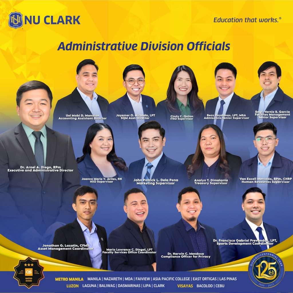 Meet your Admin Division Officials — the team dedicated to ensuring efficient operations and excellent service across NU Clark!