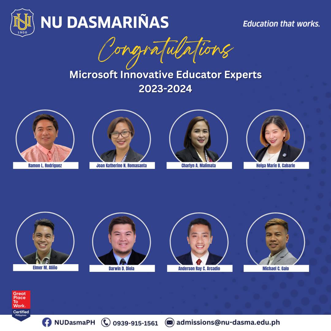 Celebrating the brilliance of our Microsoft Innovative Educator Experts at NU Dasmarinas! These dedicated educators are shaping the future of learning through innovation and technology.