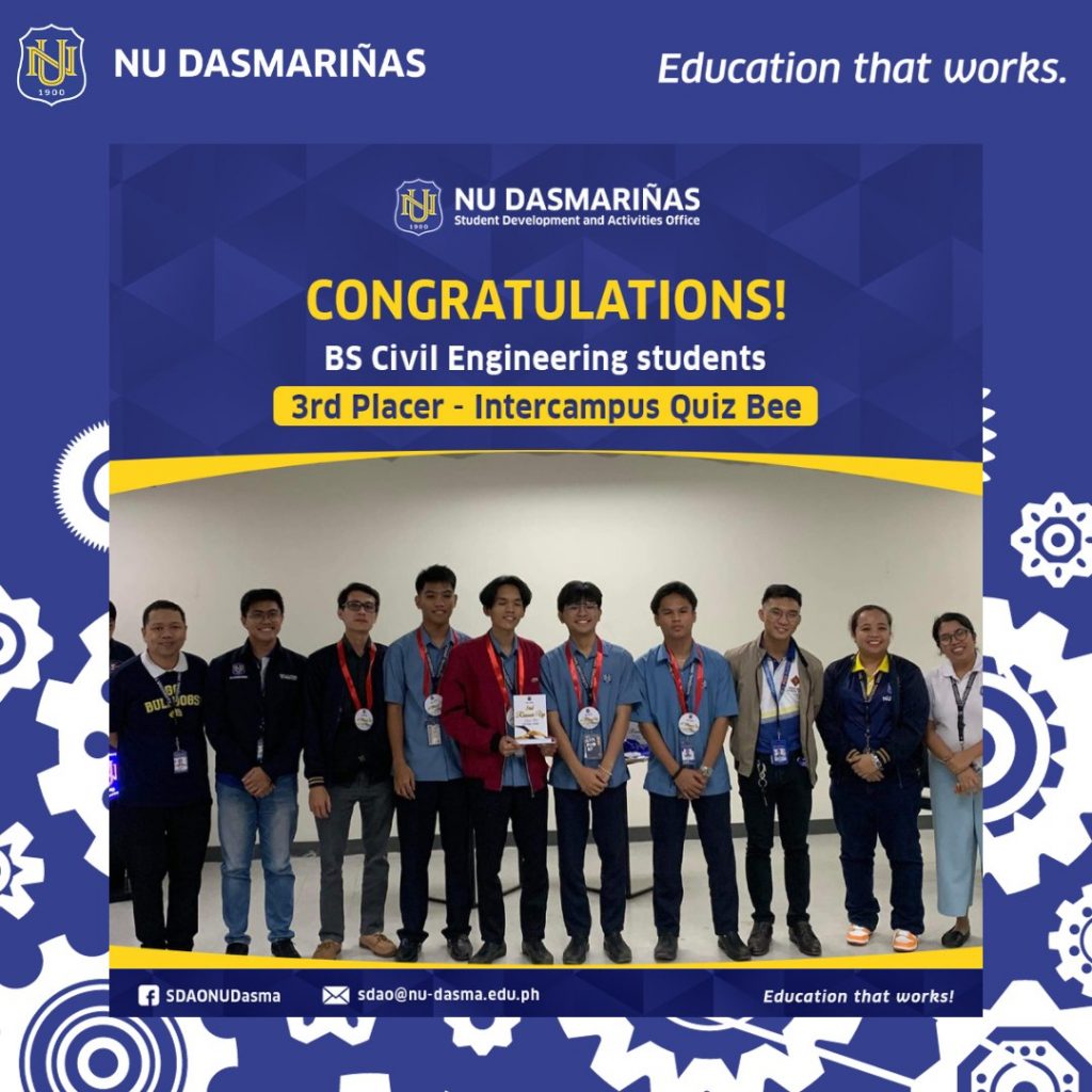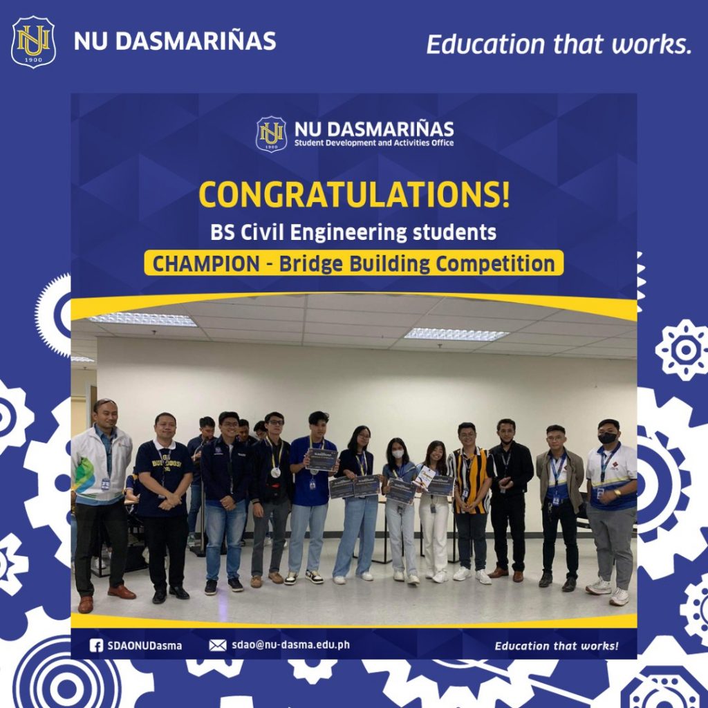 More pride and honor were brought home as our Civil Engineering Students bagged the Champion spot in the Bridge-building Competition and 3rd Place in the Intercampus Quiz Bee Competition held at NU Lipa