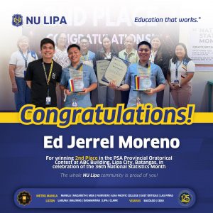 NU Lipa is happy to announce the extension degree programs opening on 1st Term AY 2022 – 2023. ☆ Bachelor of Science in Accountancy ☆ Bachelor of Science in Business Administration major in Financial Management ☆ Bachelor of Science in Business Administration major in Marketing Management ☆ Bachelor of Science in Civil Engineering ☆ Bachelor of Science in Computer Science ☆ Bachelor of Science in Information Technology ☆ Bachelor of Science in Medical Technology ☆ Bachelor of Science in Nursing […]