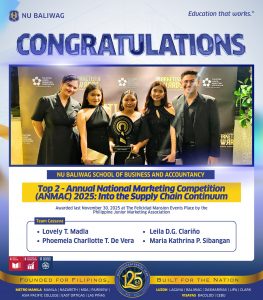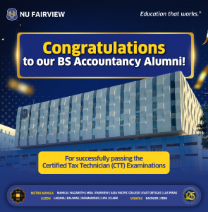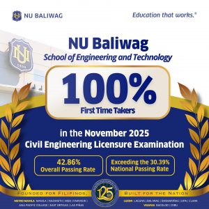 NU Baliwag proudly celebrates the outstanding achievement of three of its dedicated graduates—Ms. Jaycel S. Cruz, Ms. Ma. Lovelie S. Ignacio, and Ms. Daniella S. Mananghaya—for successfully passing the Chartered Tax Professional Examination held on January 4, 2026, administered by the Accounting Certification and Training Institute (ACTI). This remarkable accomplishment reflects not only their hard work, dedication, and perseverance but also the quality of education and professional preparation provided by NU Baliwag. Their success exemplifies the university’s commitment to nurturing […]