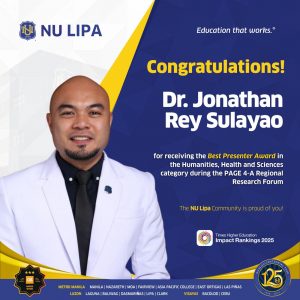 Dr. Jessie S. Barrot, an awardee of the Gawad Sulo for Eminent Alumni in Education by the Philippine Normal University (PNU), continues to bring honor and prestige to National University. As a Professor and Assistant Vice President for Research and Development Office, and a Top 2% World Researcher (2023–2025), his outstanding contributions to linguistics and education, extensive international publications, and active engagement in global research networks have significantly strengthened NU’s research culture, academic leadership, and international standing. His achievements reflect […]