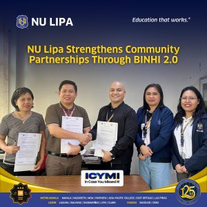 NU Lipa officially reinforced its commitment to community engagement with the signing of a Memorandum of Agreement (MOA) with Mabini Elementary School (MES) and Rizal Integrated National High School (RINHS). This partnership marks a significant milestone in promoting sustainable education and advancing livelihood initiatives under Project BINHI 2.0, reaffirming a shared dedication to empowering learners, families, and communities. The university extends its sincere appreciation to Mr. Ariel Abel, OIC of MES, and Ms. Michelle Katigbak, Principal of RINHS, for their […]