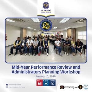 National University Baliwag once again demonstrated its strong commitment to quality education, collaboration, and strategic growth through the successful conduct of the NU Baliwag Mid-Year Performance Review and Administrators Planning Workshop (NUB MYPRAP) 2026. The institutional activity gathered all campus divisions—Executive, Academic, Academic Services, and Administrative Services—together with representatives from Shared Services, Dr. Rosauro E. Manuel and Mr. Ervin A. Torres, underscoring a unified approach to institutional excellence. The first part of the program was led by Executive Director Dr. […]