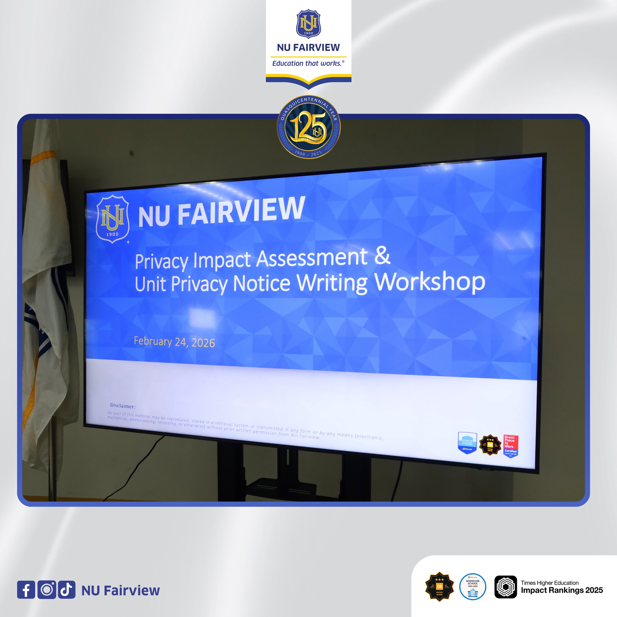 Last February 24, 2026, the NU Fairview Data Privacy Office held the Privacy Impact Assessment (PIA) Completion Workshop and Unit Privacy Notice Writing Workshop. The workshop was attended by Unit Heads from various departments across NU Fairview. This initiative strengthens our commitment to data protection and responsible information handling throughout the institution. Moreover, the units were able to show a deeper, more practical understanding of how to integrate the Data Privacy Act of 2012 into their respective unit’s operations.