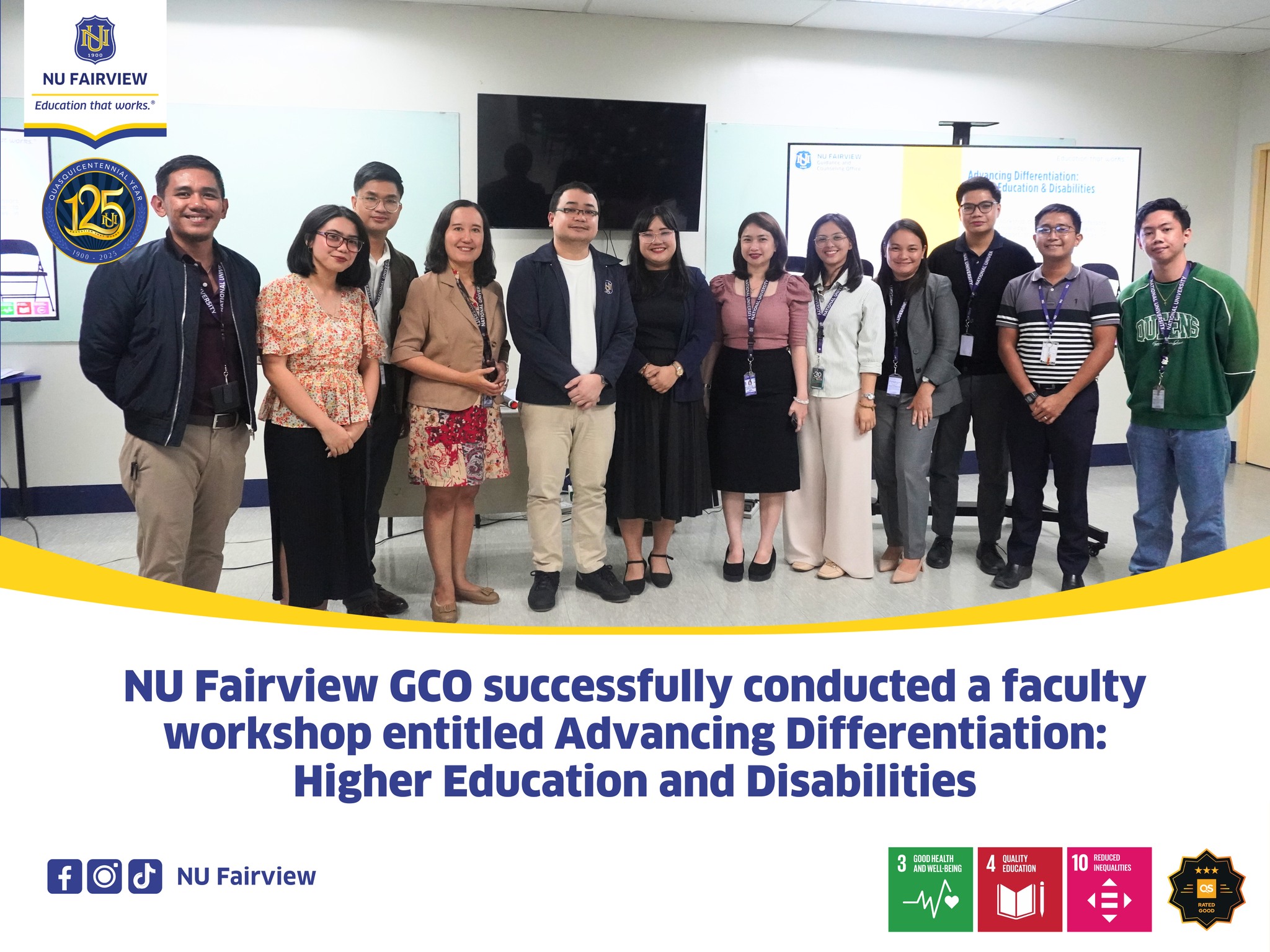 NU Fairview successfully held the faculty workshop “Advancing Differentiation: Higher Education and Disabilities”—a meaningful initiative led by the Guidance and Counseling Office, in collaboration with the Human Resources Office and Faculty Services Office.