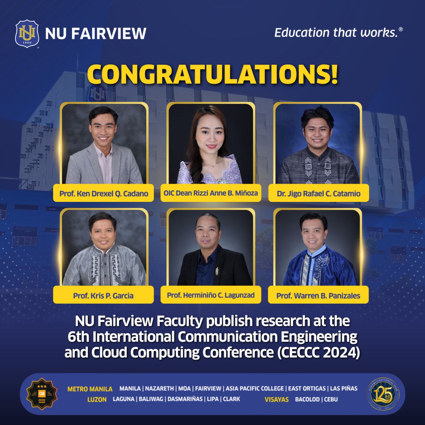 NU Fairview Faculty publish research at the 6th International Communication Engineering and Cloud Computing Conference (CECCC 2024)