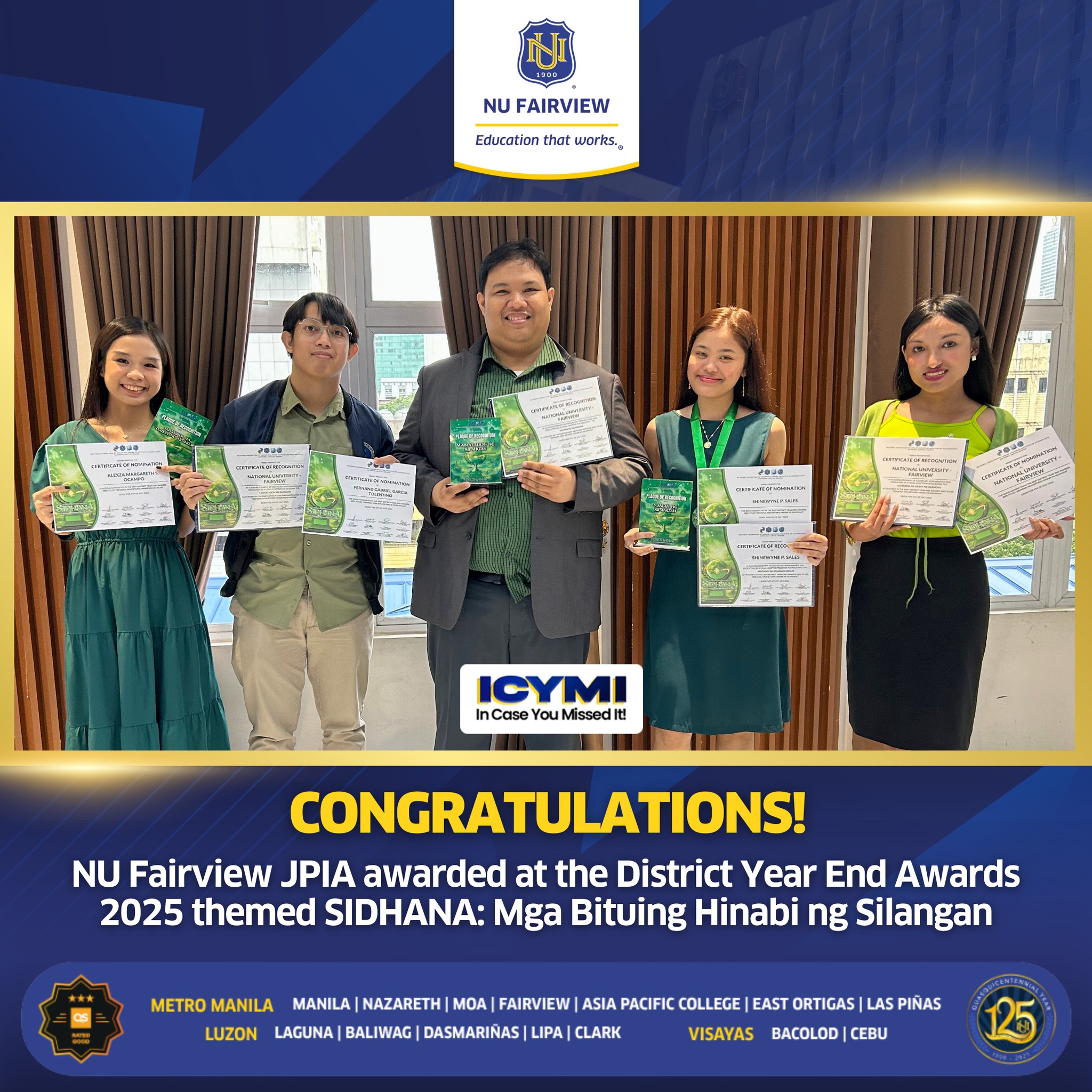 NU Fairview JPIA students nominated and receives award at the District Year End Awards 2025