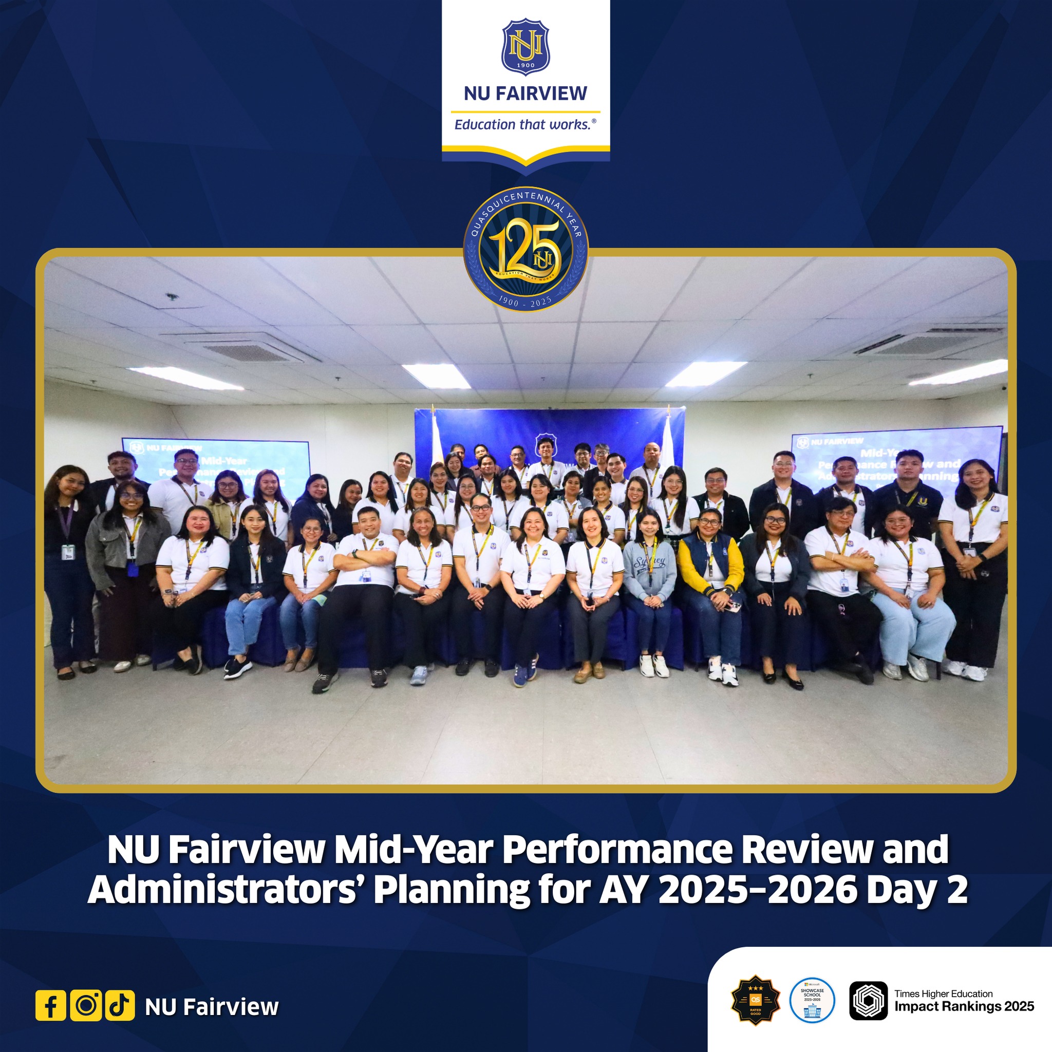 NU Fairview marks Day 2 of its Mid-Year Performance Review and Administrators’ Planning (MYPRAP) for AY 2025–2026.