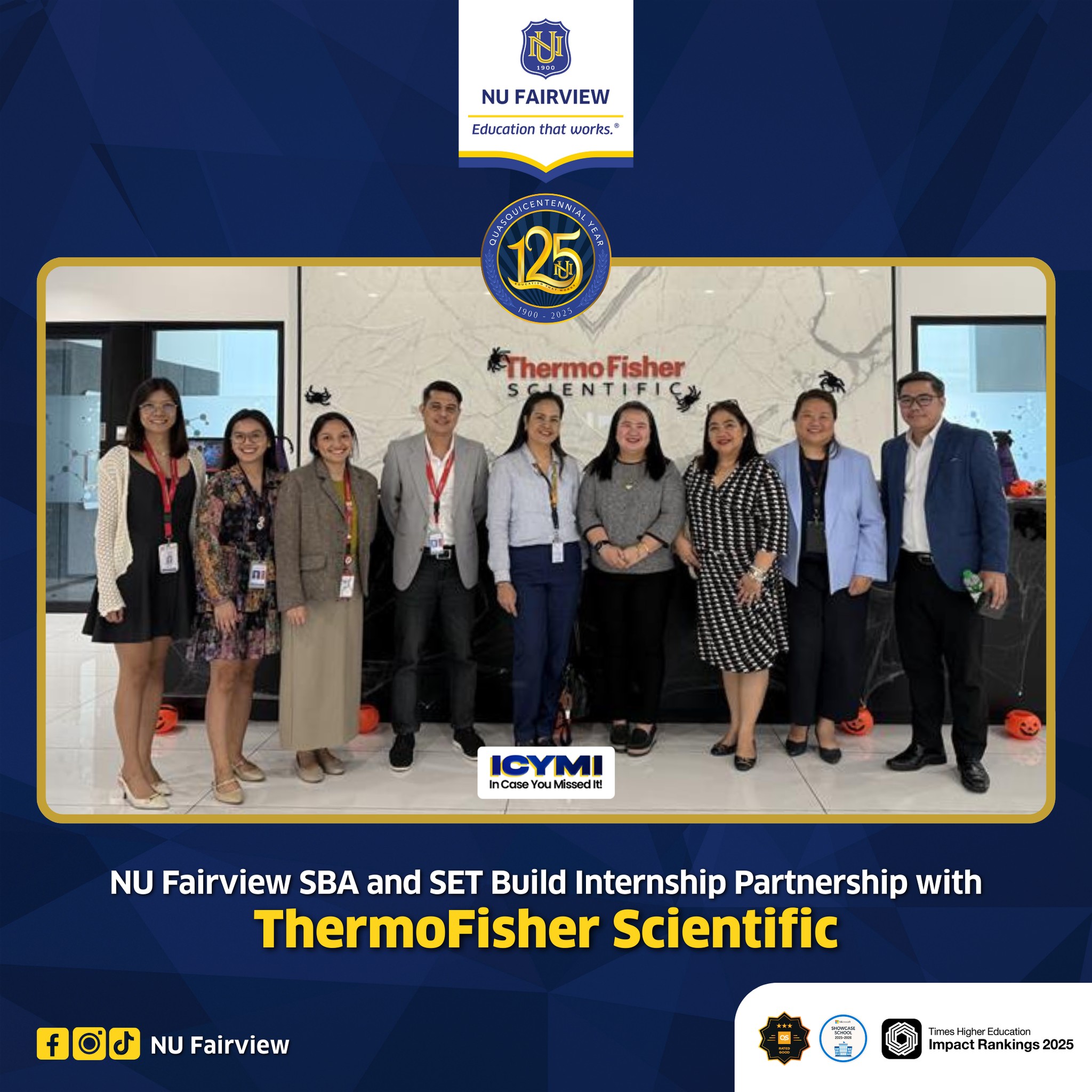 On October 28, 2025, NU Fairview’s School of Business and Accountancy and School of Engineering and Technology formed an internship partnership with the officials and HR team of ThermoFisher Scientific.
