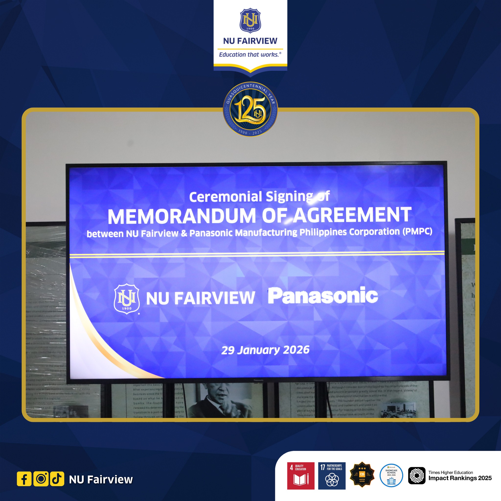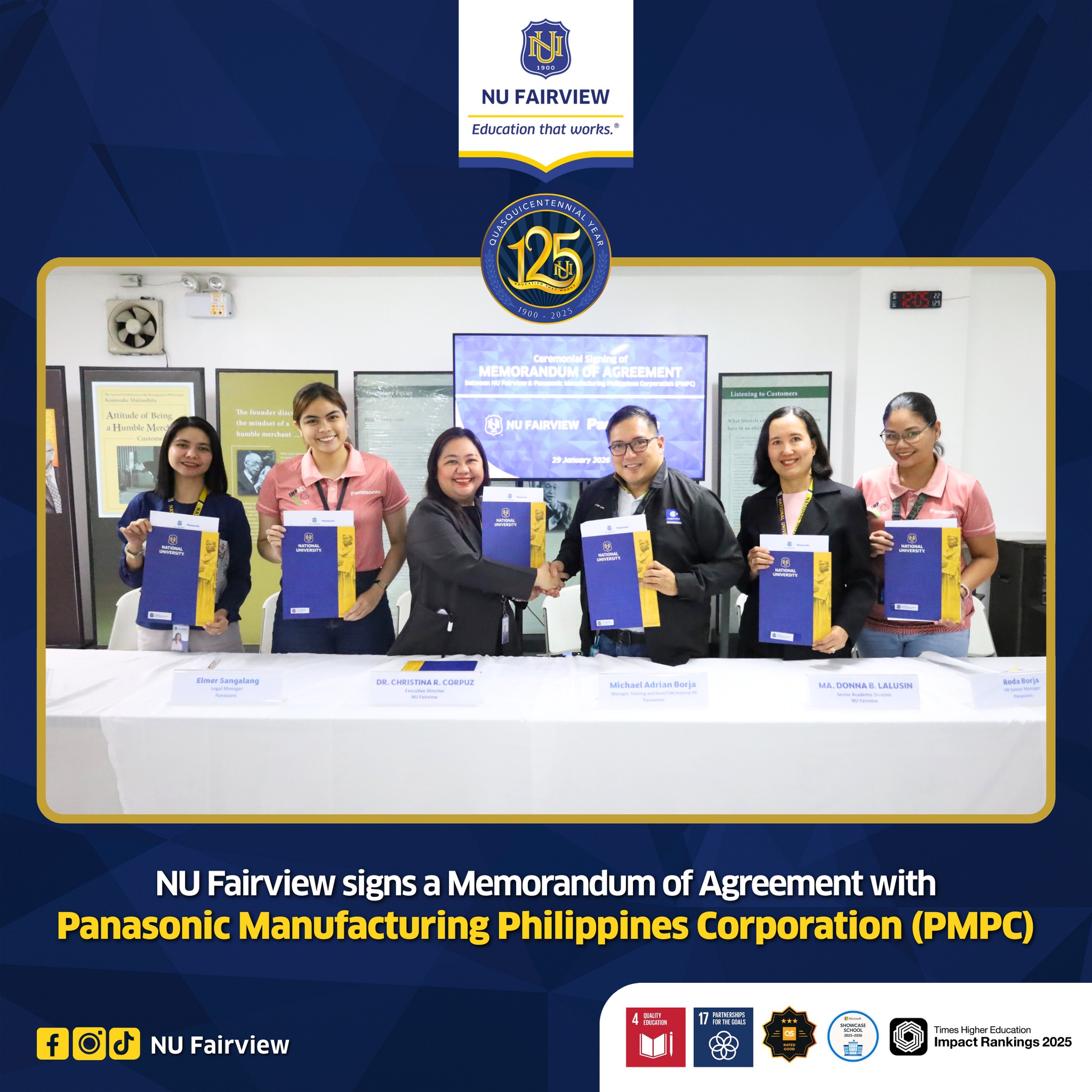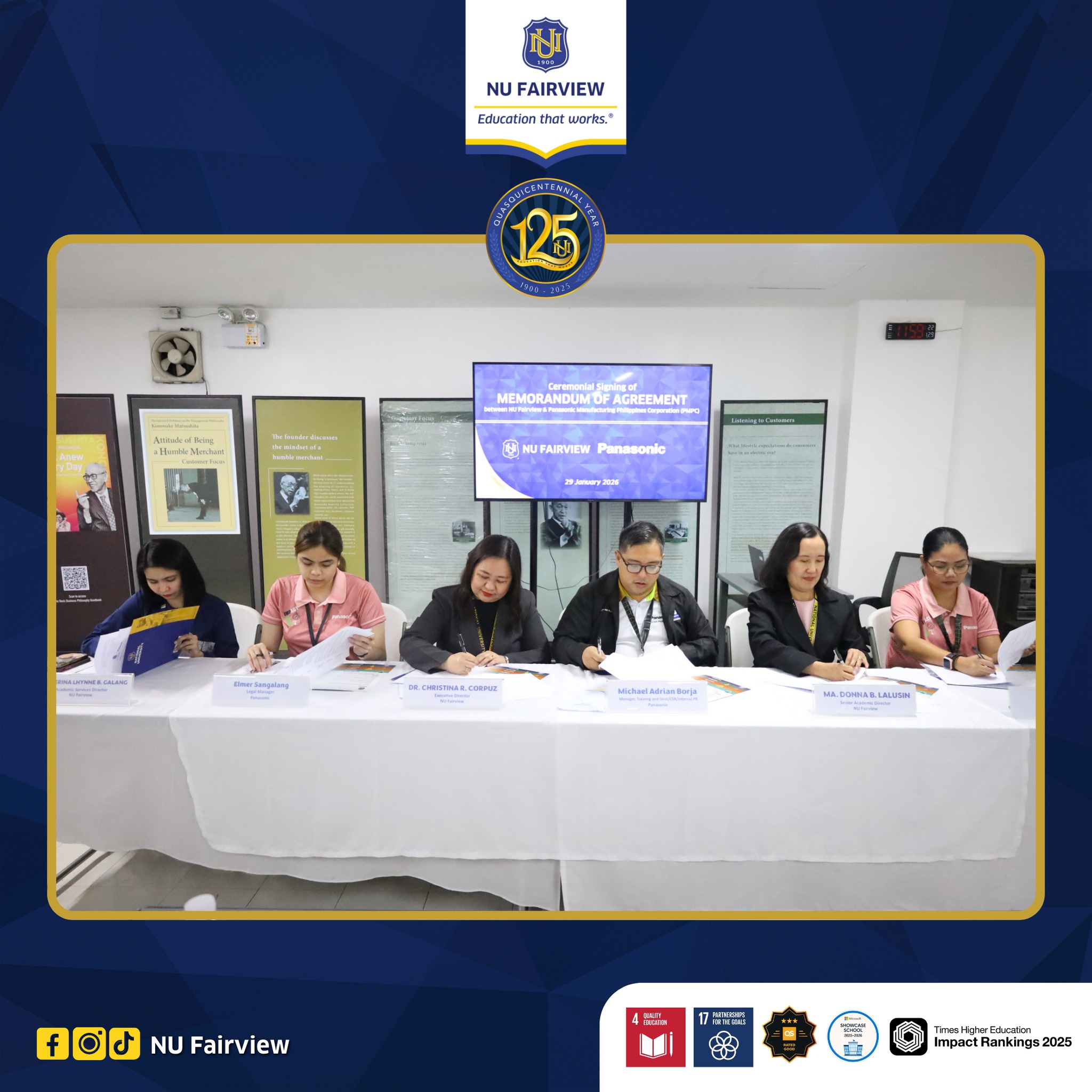 Strengthening academe-industry collaboration through holistic internship experience highlights the ceremonial signing of the Memorandum of Agreement (MOA) between the Panasonic Manufacturing Philippines Corporation (PMPC) and NU Fairview on January 29, 2026, held at Ortigas Ave. Extension, Taytay, Rizal.