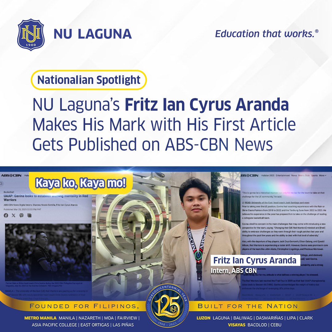 NU Laguna’s Fritz Ian Cyrus Aranda is making waves as his very first article gets published on ABS-CBN News!