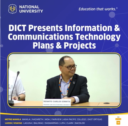 Various DICT services are presented at NU Clark, the 1st leg of the DICT Roadshow, including the eGov app, and ongoing plans and projects of the different Information and Communications Technology Bureaus covering Industry Development, Literacy and Competency Development, Cybersecurity, and Planning, Policy, and Standards, such as the National Broadband Plan and Free Wifi Project.