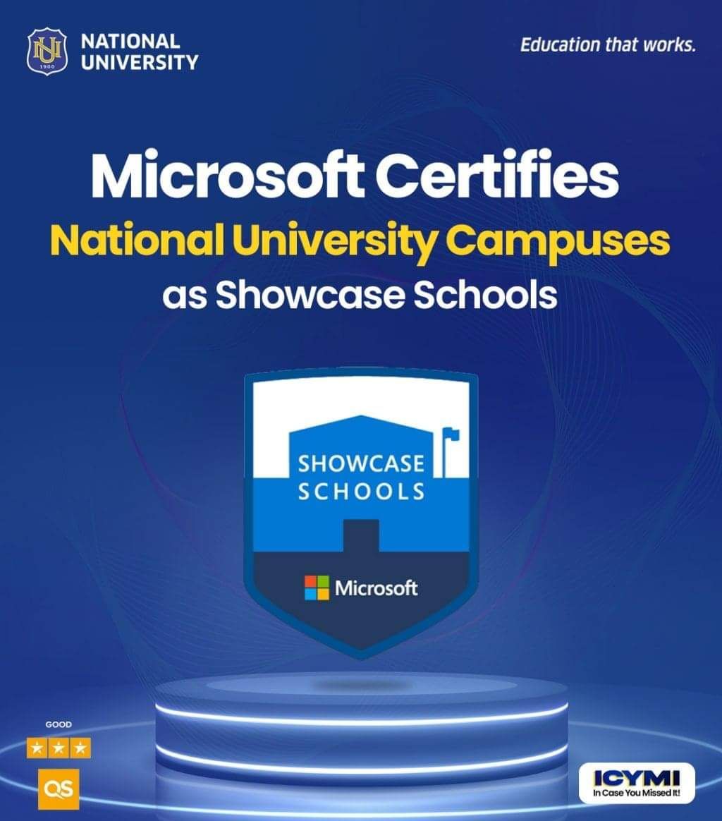 National University is once again recognized as a Microsoft Showcase School, an elite group of schools that exemplifies the best of teaching and learning in the world today.