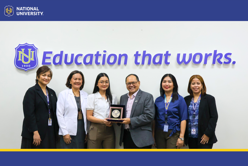 January 2025 Architecture Licensure Examination Top 5, Ar. Rhica Panganiban Cruz; August 2024 Sanitary Engineer Licensure Examination Top 1, Engr. Franz Dionisio Santos; and November 2024 Philippine Nurses Licensure Examination Top 10, Lea Maxine Macaraeg, RN, paid a courtesy visit to National University President/CEO Dr. Renato Carlos H. Ermita, Jr.