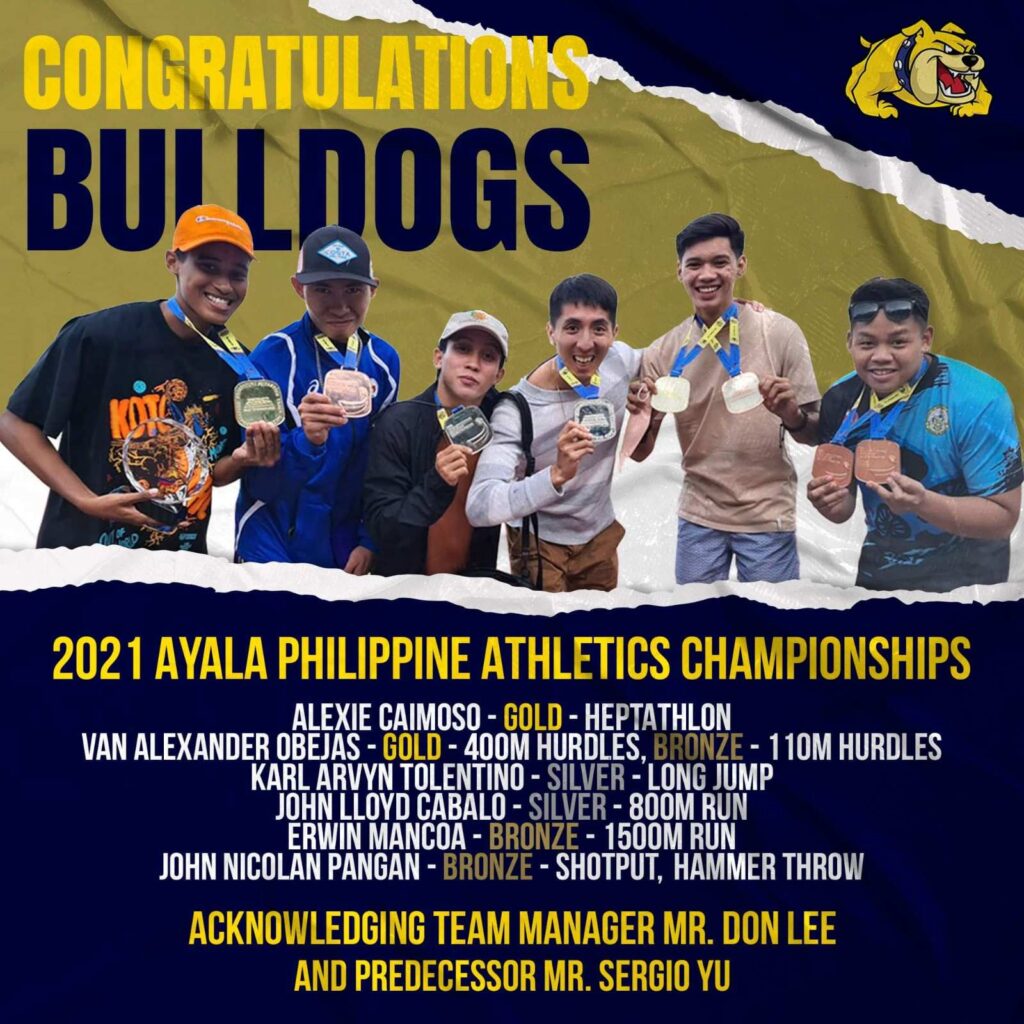 Result of the recently concluded PATAFA 2021 AYALA PHILIPPINE ATHLETICS CHAMPIONSHIPS held in Baguio City from December 16-17, 2021. NU Athletics Team fielded 7 student athletes and 6 of them won a total of 7 medals (2 Golds, 2 Silvers, 3 Bronzes). All fhe medal winners are candidate for inclusion in fhe National Training Pool preparing for the 31st SEA Games and Asian Games next year. Kudos to TM Don Lee (Athletics) and his predessesor TM Sergio Yu. Cheers!!!
