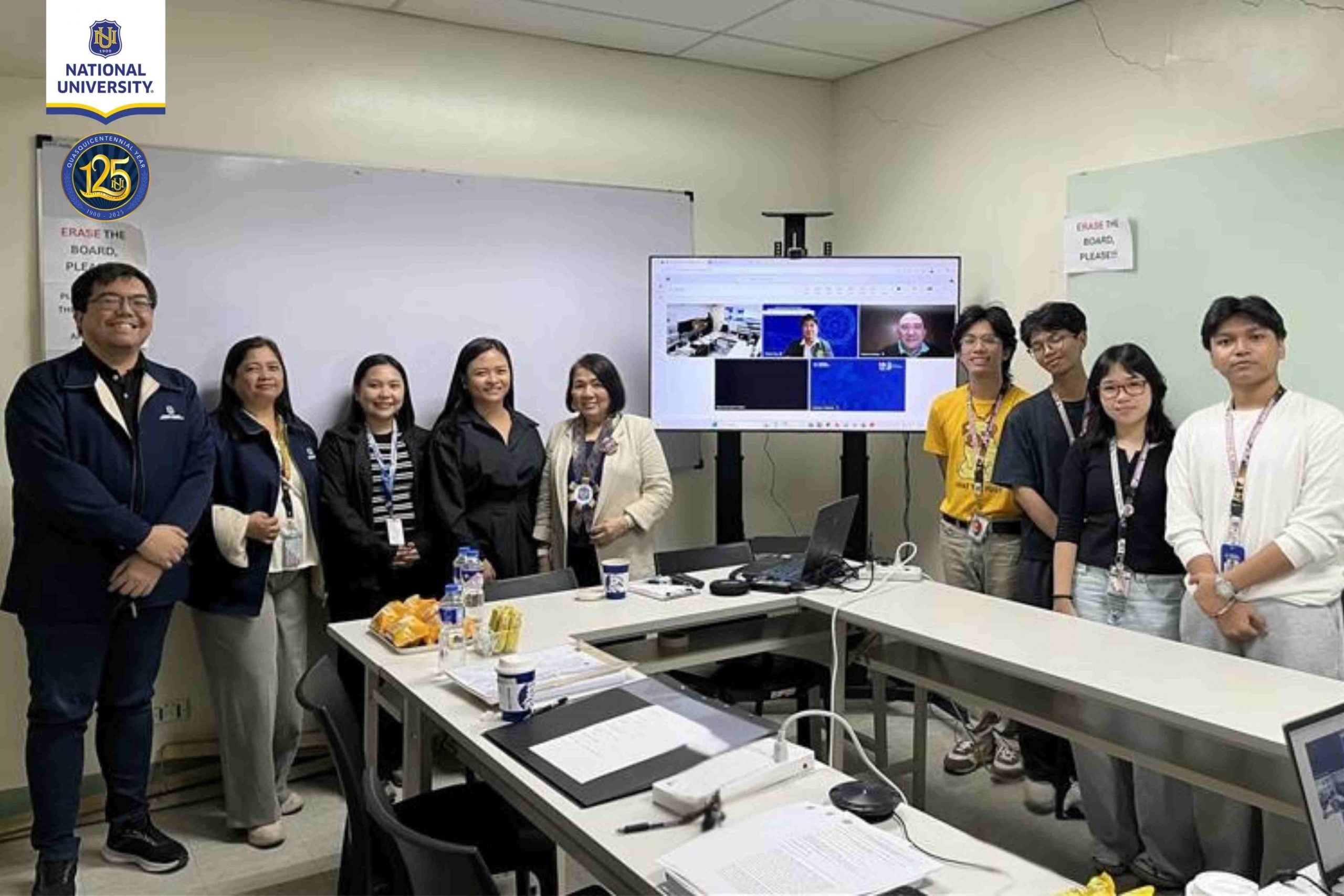 In photo: PRBEnP Chairman Hon. Michael T. Ang (center, on screen), PRBEnP member Hon. Corazon B. Cruz (5th from left), OIC-Dean of NU Manila College of Architecture, Planning, and Sustainable Built Environment, Ar. Ruiza Anne April D. Diestro (4th from left), and Program Chair of BS Environmental Planning (BSEnP), Ar./EnP. Eufrosina J. Nazareta (2nd from left).
