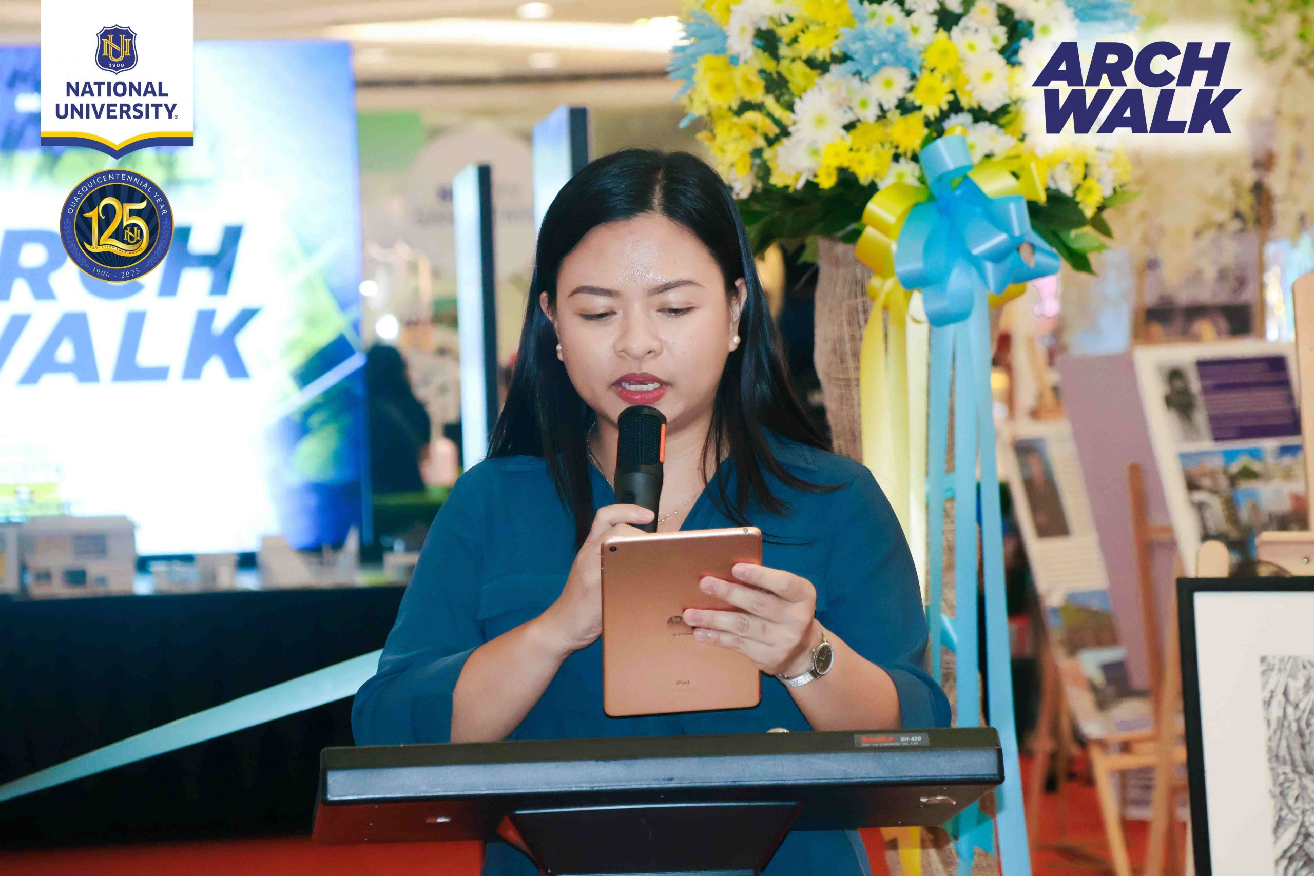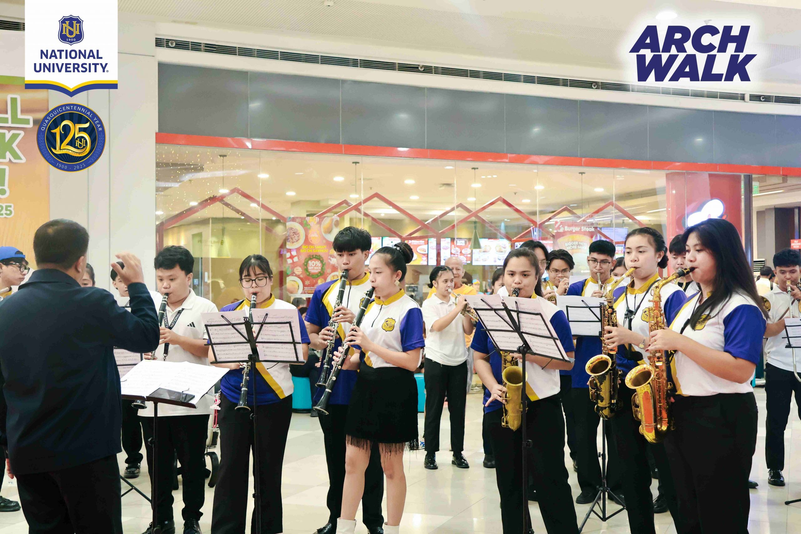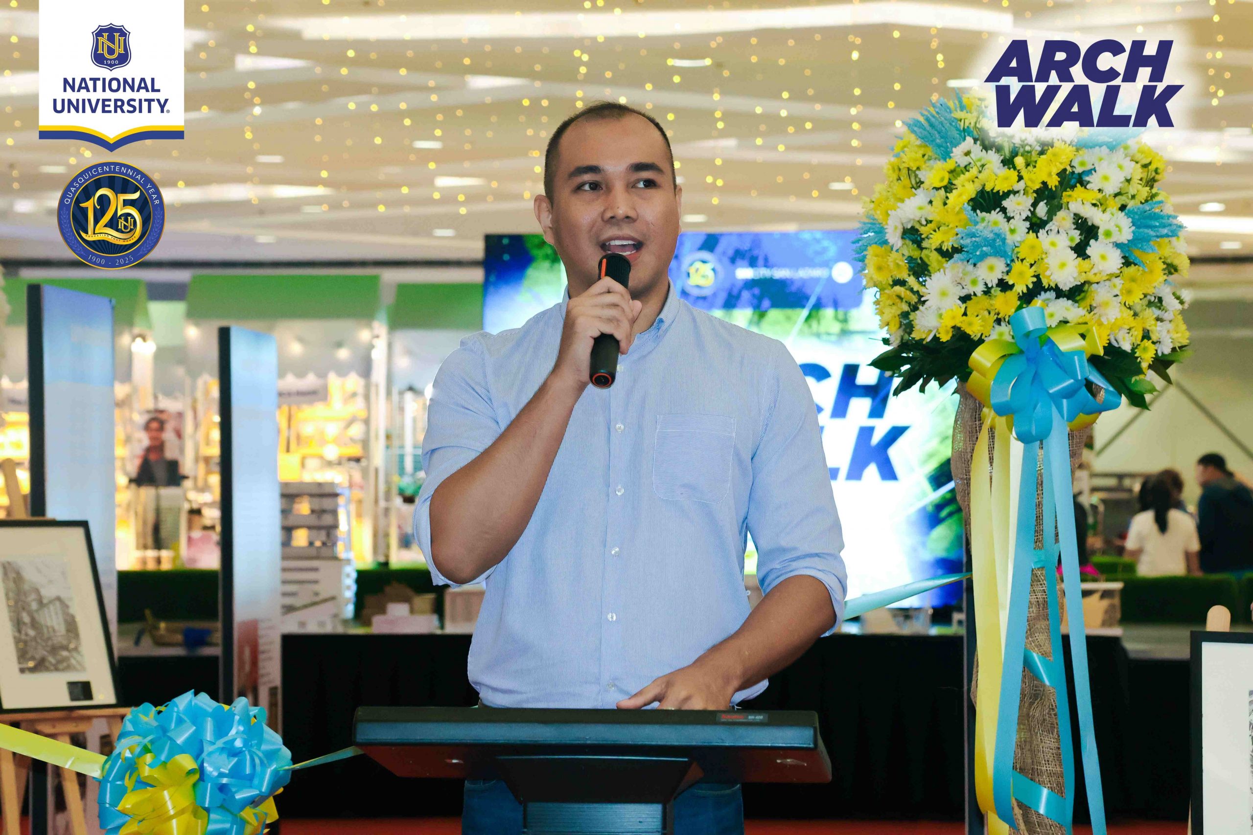 The opening ceremony was graced by Dean April Diesto (OIC Dean, NU Architecture), Ar. Bryll Edison Par (Event Director, ArchWalk), and Ms. Cherry Mugas (Marketing Coordinator, NU Manila). Representing SM were Mr. Jesus Raymund Arañas (AVP Marketing, SM Supermalls), Ms. Claire Rue (Mall Manager, SM City San Lazaro), Ms. Feliz Prepena (Marketing Officer, SM City San Lazaro), and Ms. Annie Rose Ong (Marketing Officer, SM City San Lazaro), along with NU Architecture faculty members. Highlights of the event included a ribbon-cutting ceremony and a vibrant performance by the NU Brass Band.