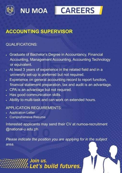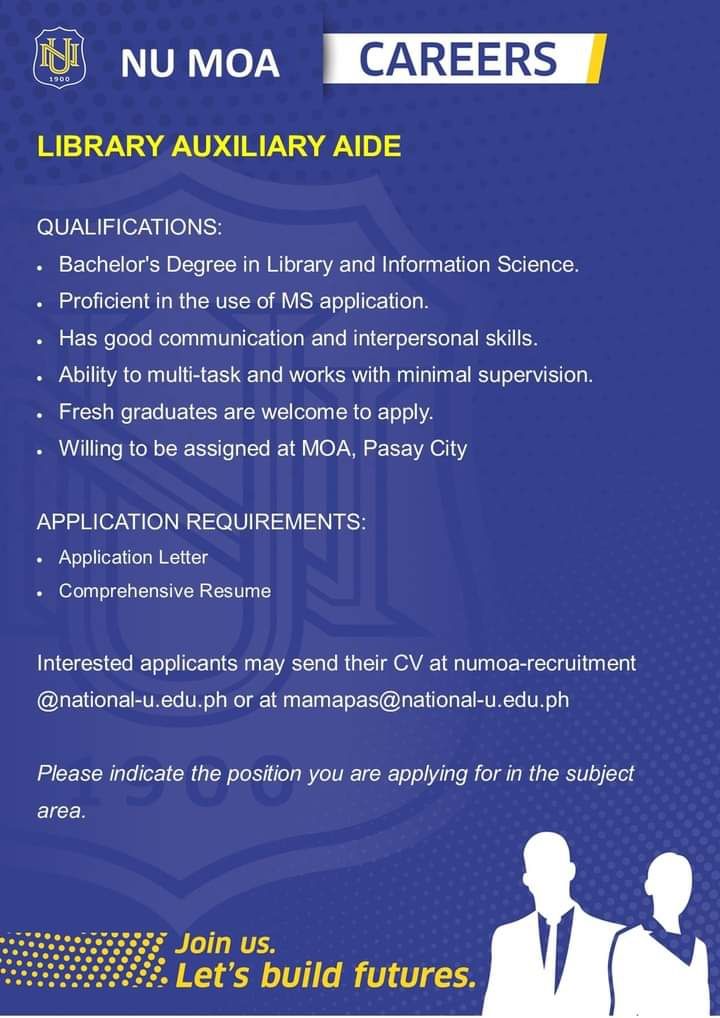 NU MOA is looking for the following Teaching and Non-Teaching positions for 2nd Term, AY 2021-2022: