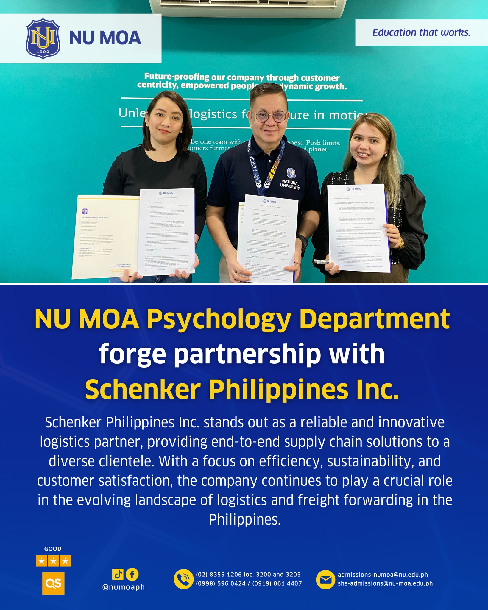 NU MOA Psychology Department is now partners with multinational company Schenker Philippines Inc., a part of the global DB Schenker network.