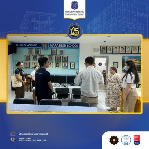 Present during the turnover were representatives from both schools. From Victorino Mapa High School, attendees included Mr. Edmund Villareal, School Principal, and Ms. Rowena Viar, Head Teacher of the Values Education Department. Representing NU Nazareth School were Ms. Christchelle G. Mondano, Senior High School Principal; Ms. Sarah Frances B. Laude, Admissions Coordinator; Mr. Jaime Rhosse M. Dela Cruz, Grade Level Coordinator (Grade 12); Mr. Arnold Alvin D. Baloso, Pastoral Ministry and Spirituality Office Coordinator; Ms. Kim Trisha M. De Castro, Admissions Associate; Mr. Carl John R. Gibaga, ITSO Associate; and Mr. James Vincent S. Hernandez, Admissions Assistant.
