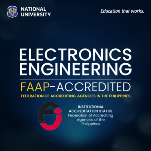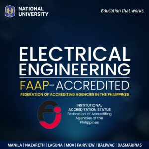 The National University community takes pride in the Federation of Accrediting Agencies in the Philippines (FAAP) accreditation of the Electrical Engineering program.