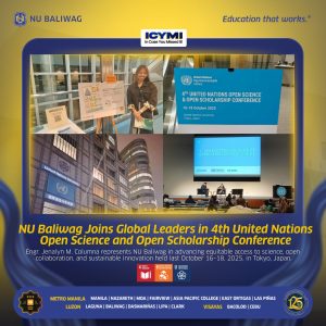 NU Baliwag proudly represented the Philippines at the 4th United Nations Open Science and Open Scholarship Conference, held from October 16–18, 2025, at the United Nations University in Tokyo, Japan. With the theme “The Right to Participate in and Benefit from Science,” the three-day international gathering convened global leaders, educators, researchers, and policymakers to advance open and inclusive scientific collaboration. The conference featured in-depth discussions on pressing global issues such as artificial intelligence and the digital divide, open infrastructure for […]