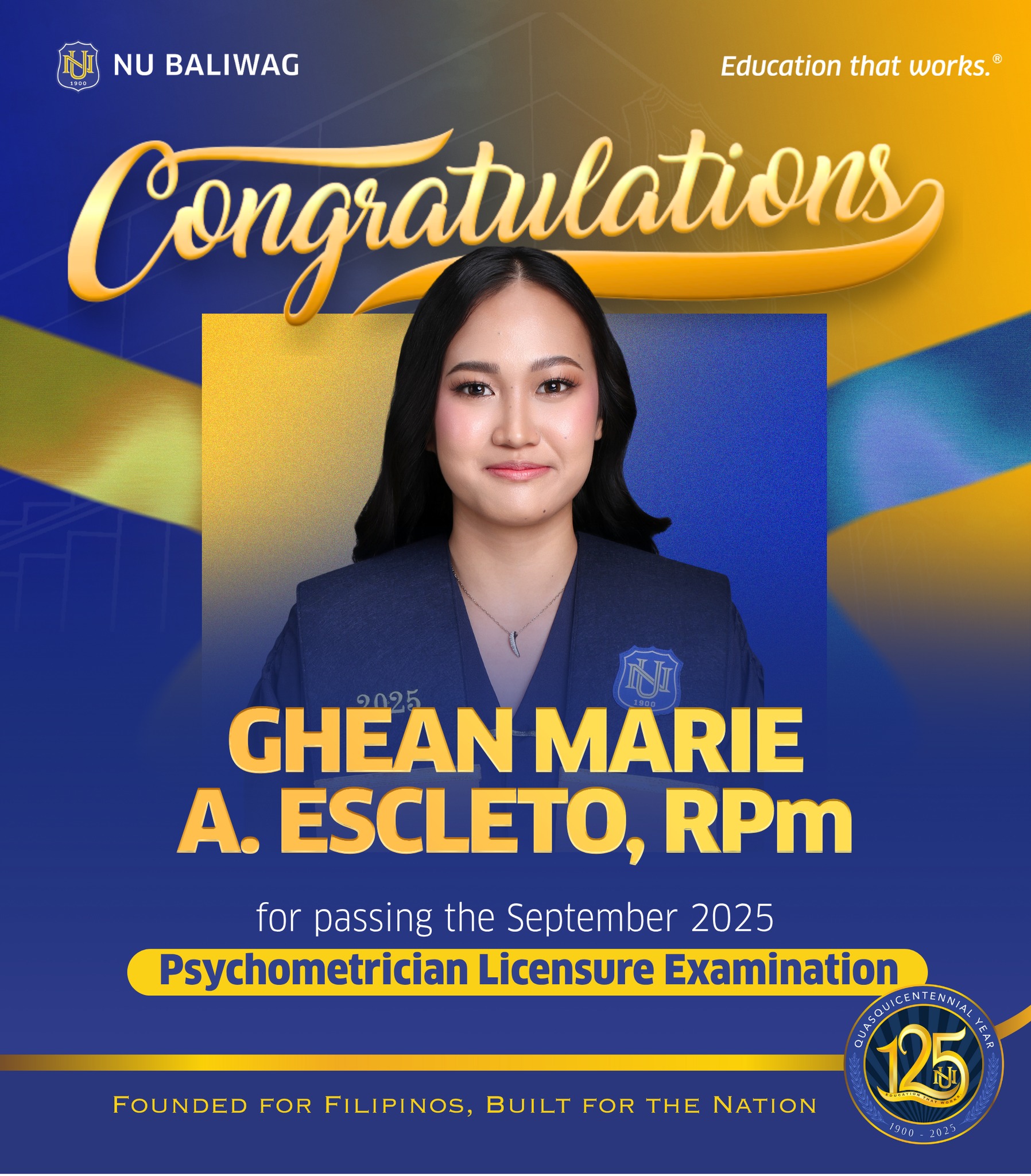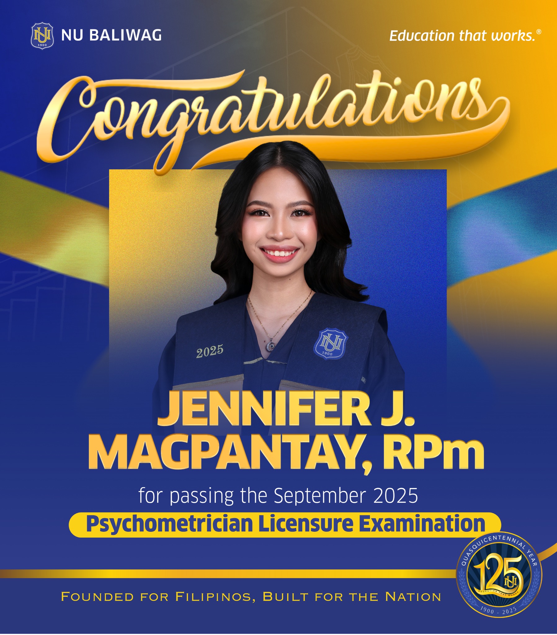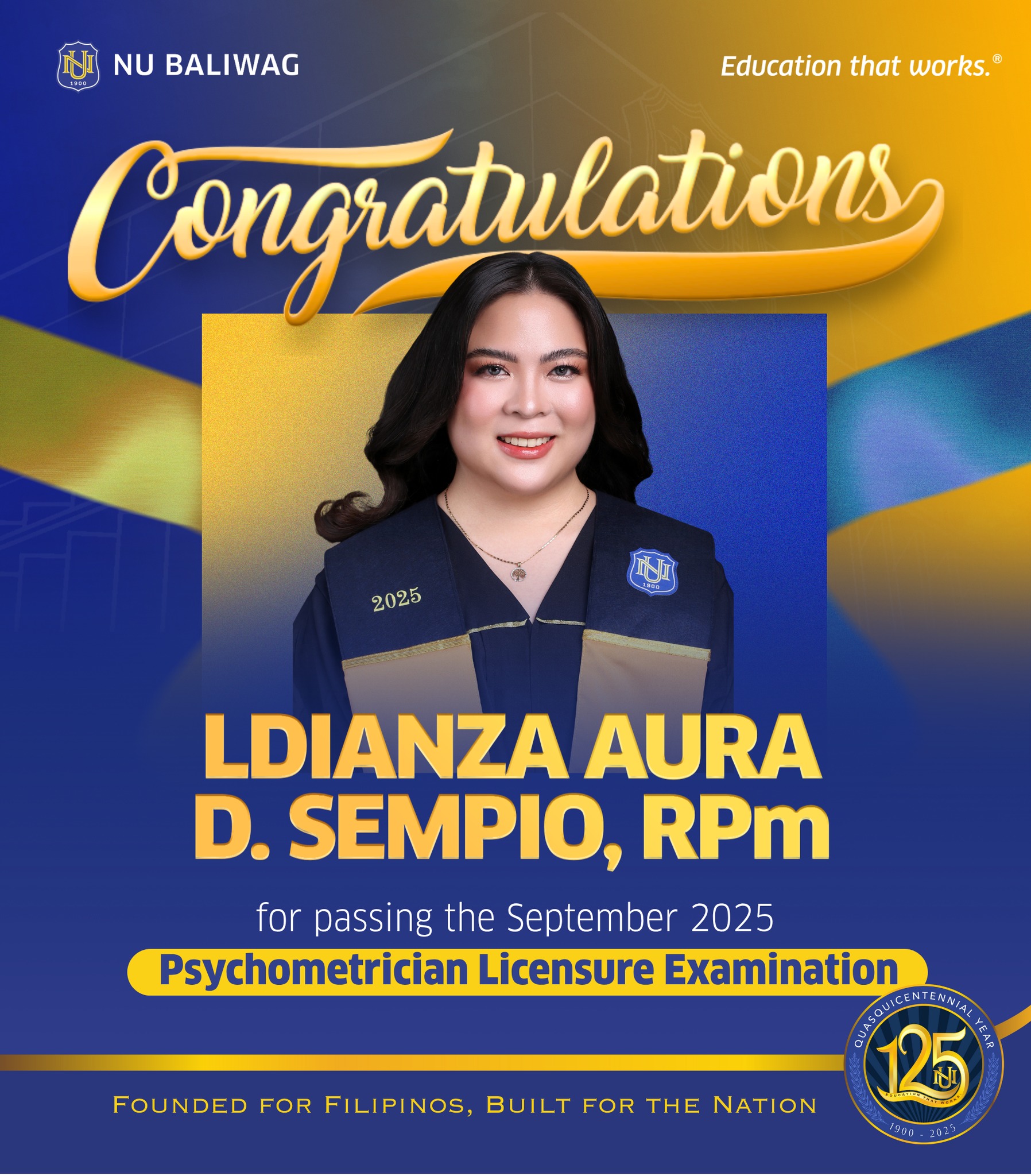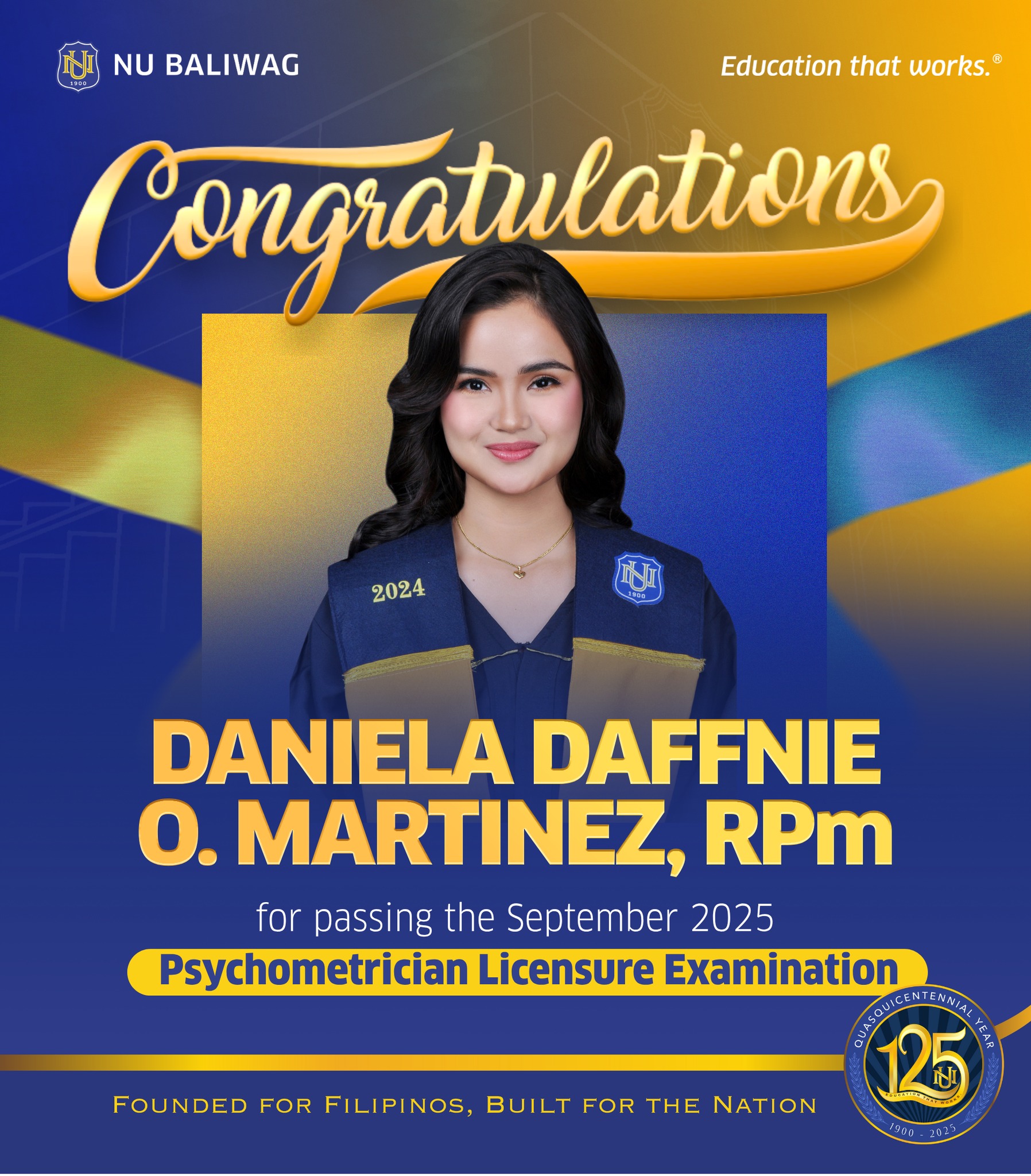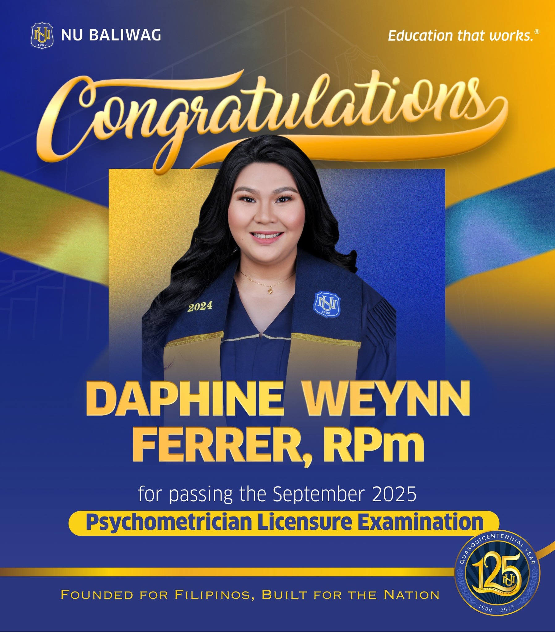 To our newly licensed psychometricians, your hard work and determination have paid off. NU Baliwag celebrates your success and looks forward to the positive impact you will create in your profession.