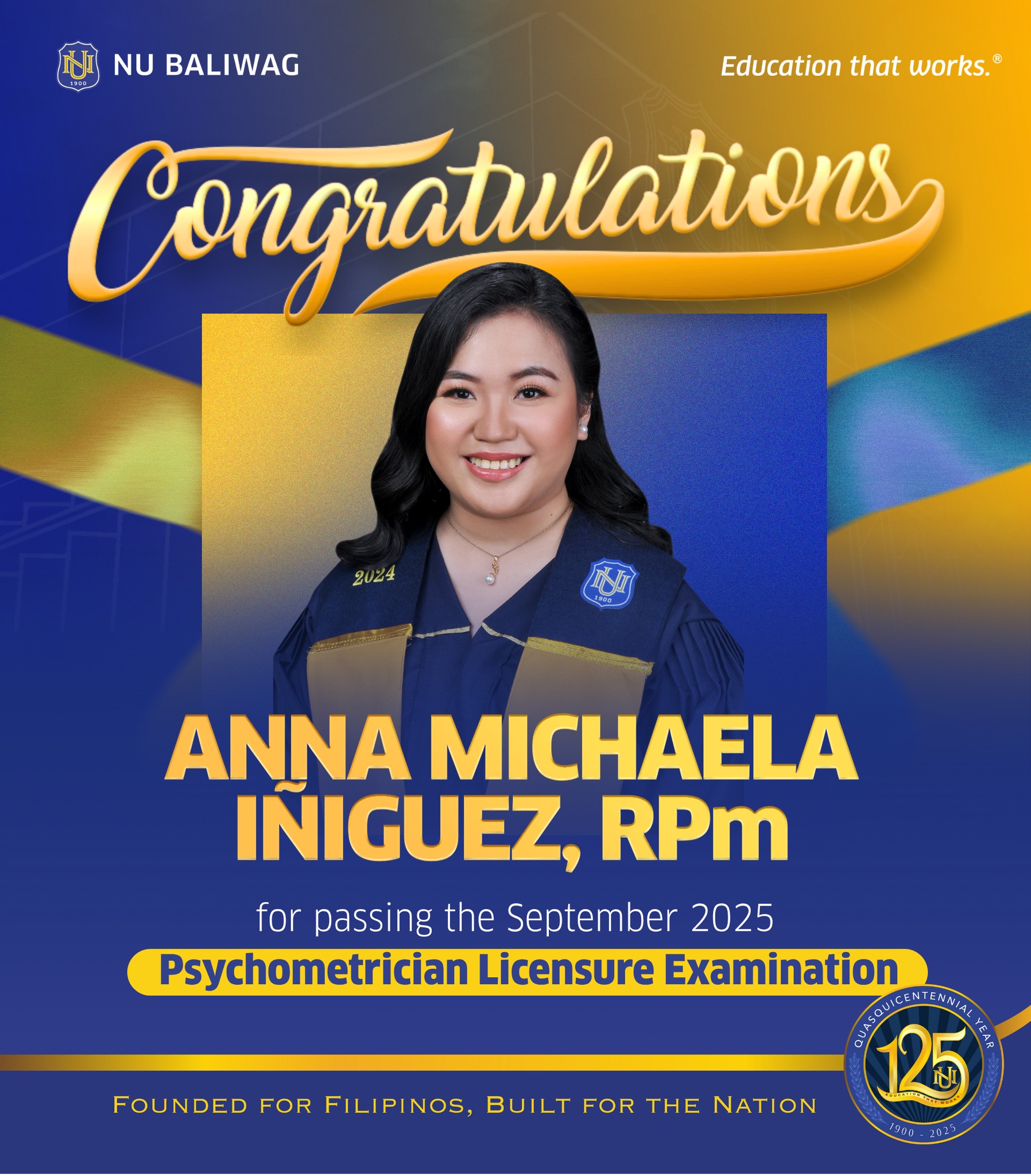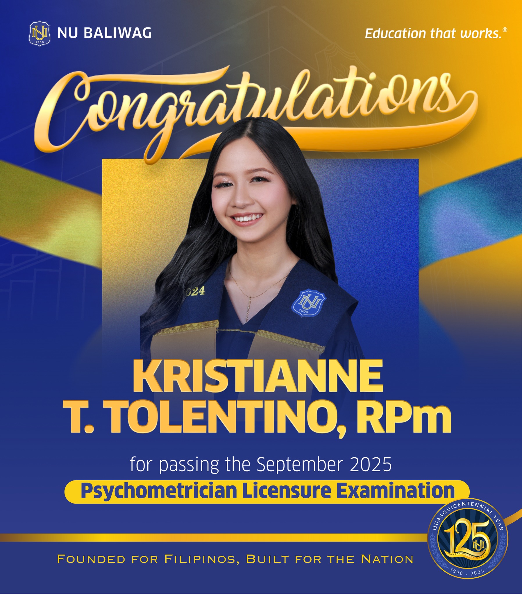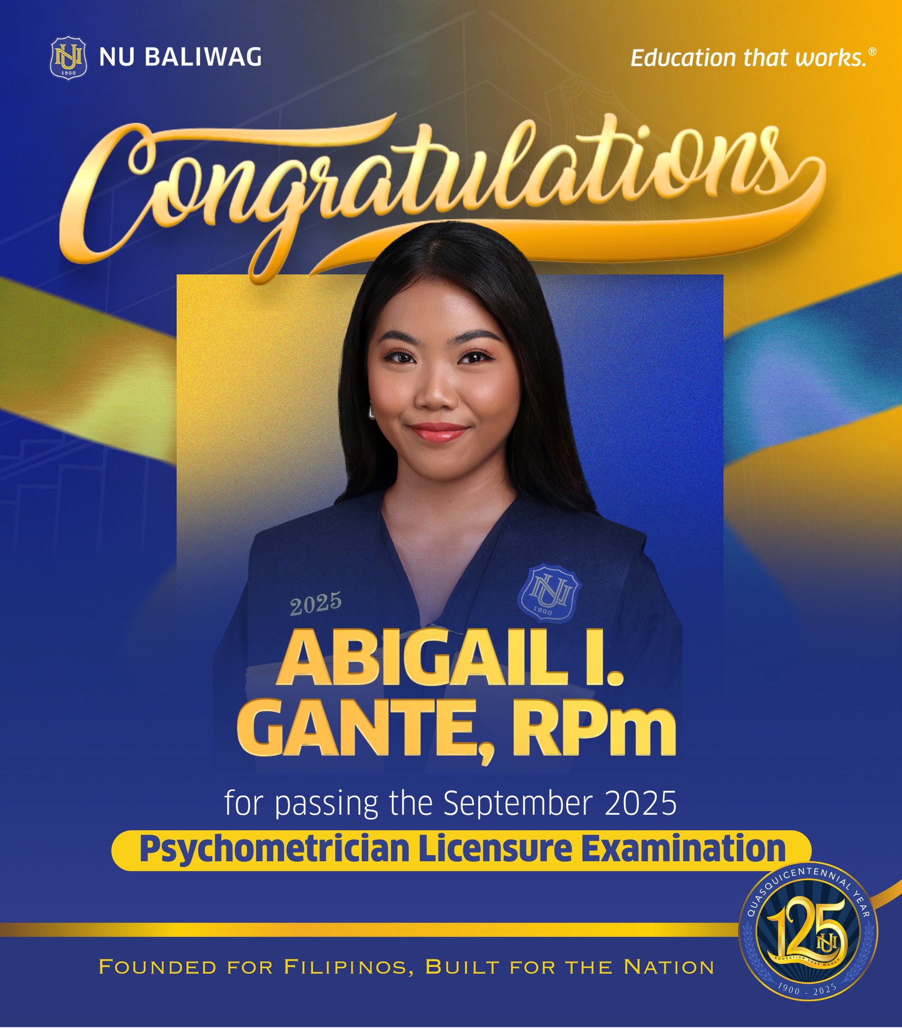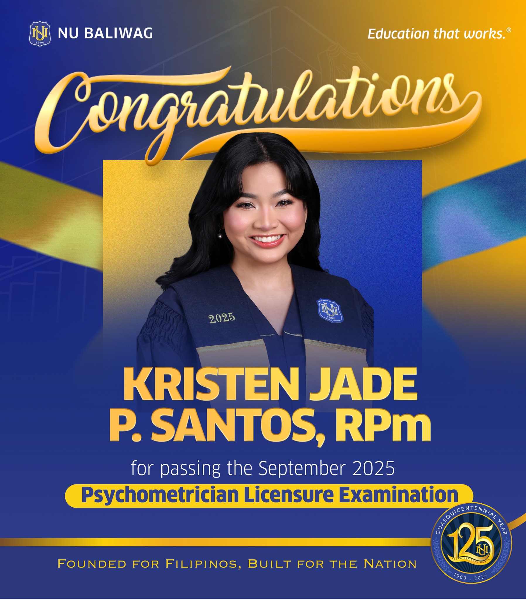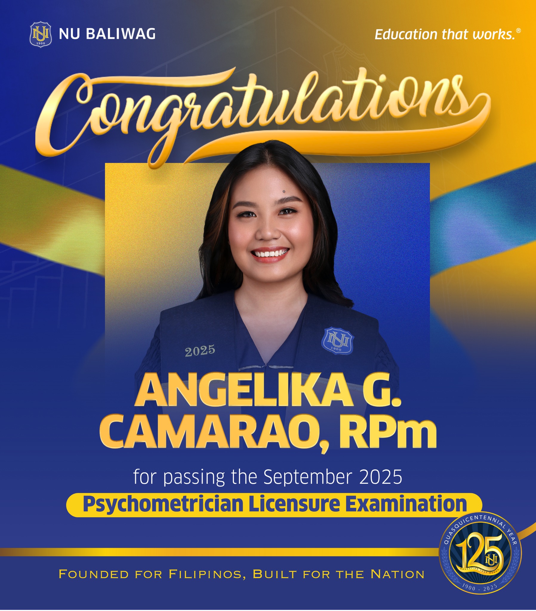 To our newly licensed psychometricians, your hard work and determination have paid off. NU Baliwag celebrates your success and looks forward to the positive impact you will create in your profession.