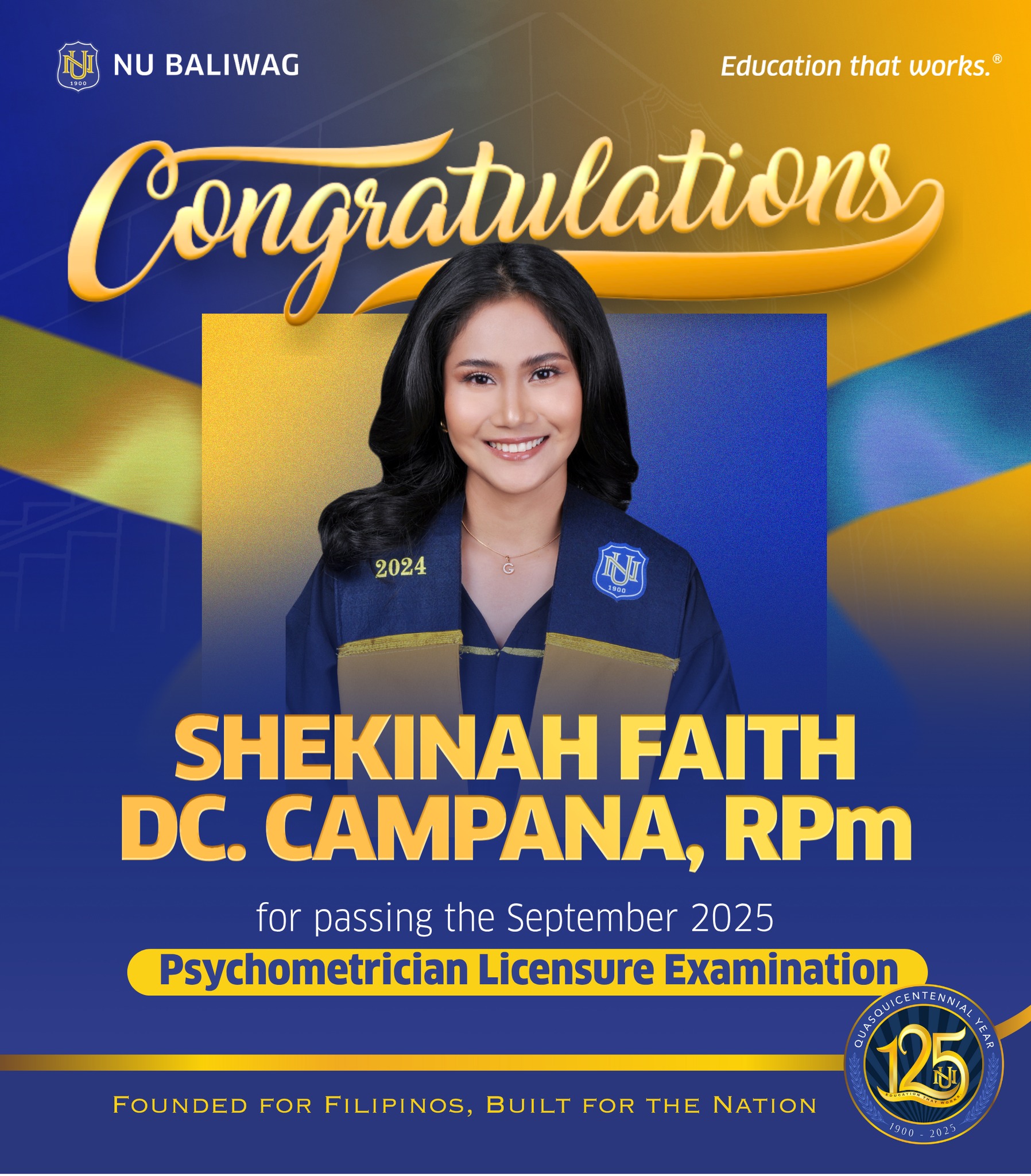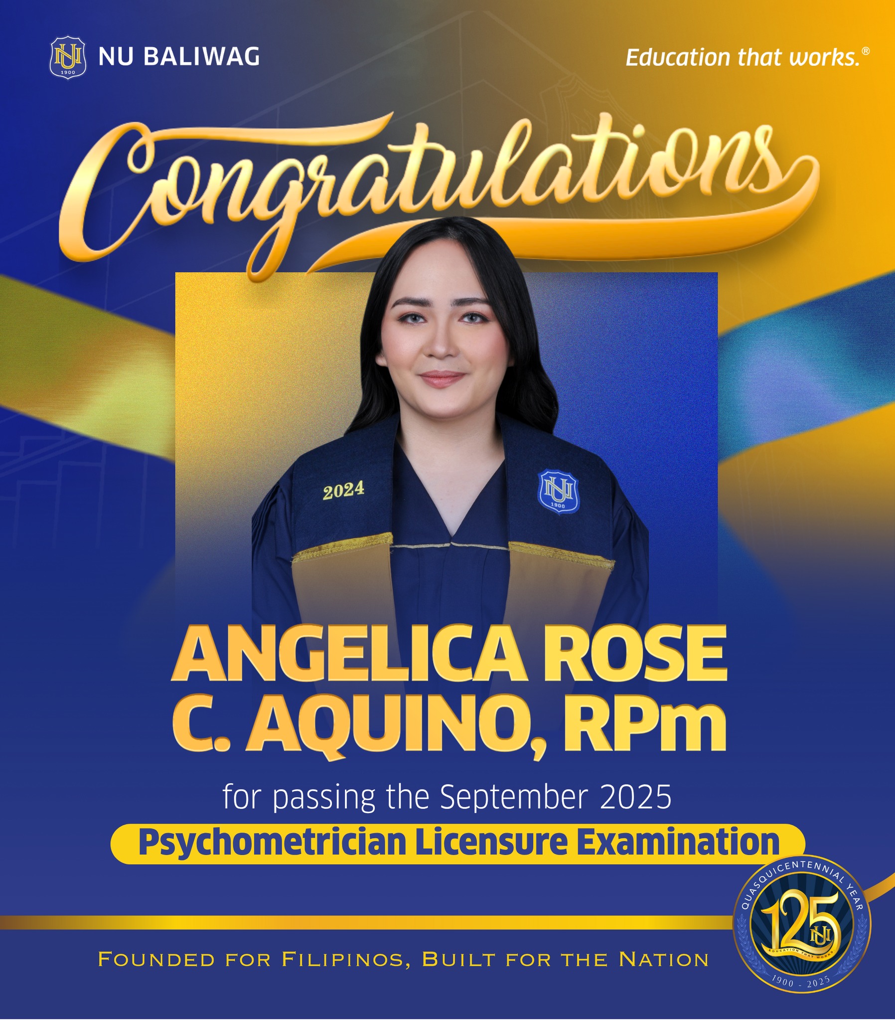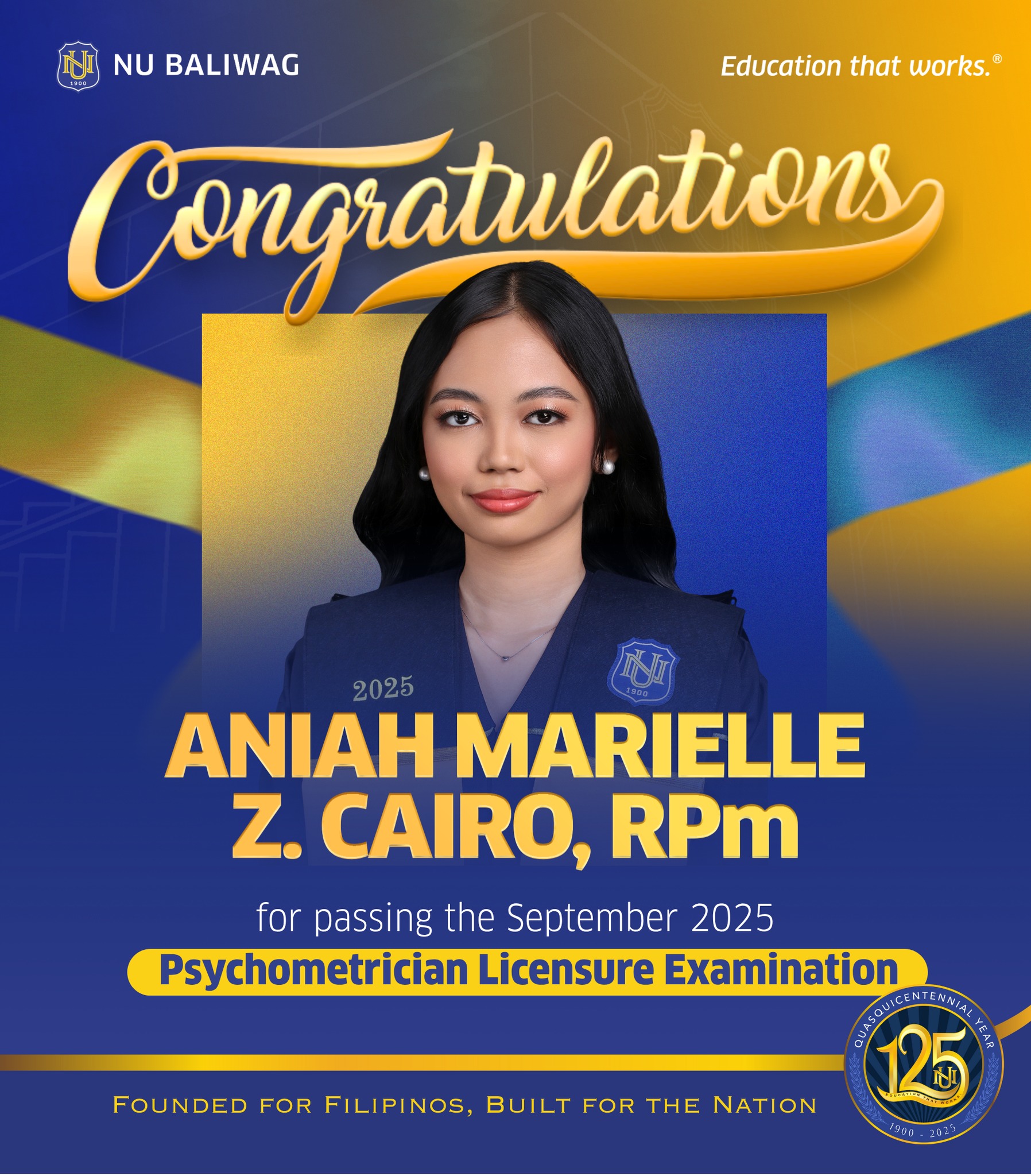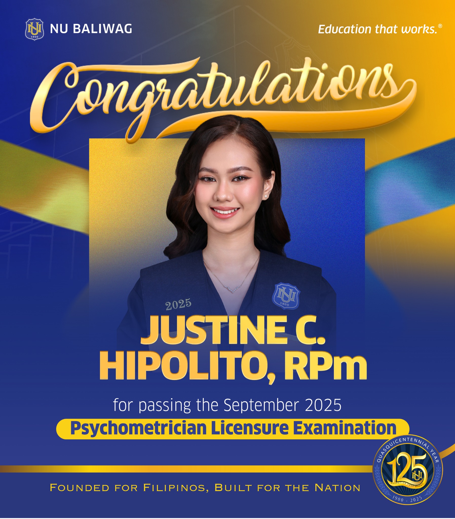 To our newly licensed psychometricians, your hard work and determination have paid off. NU Baliwag celebrates your success and looks forward to the positive impact you will create in your profession.