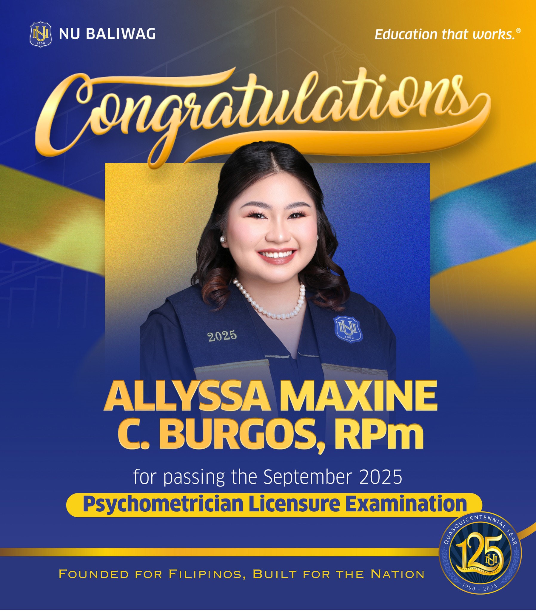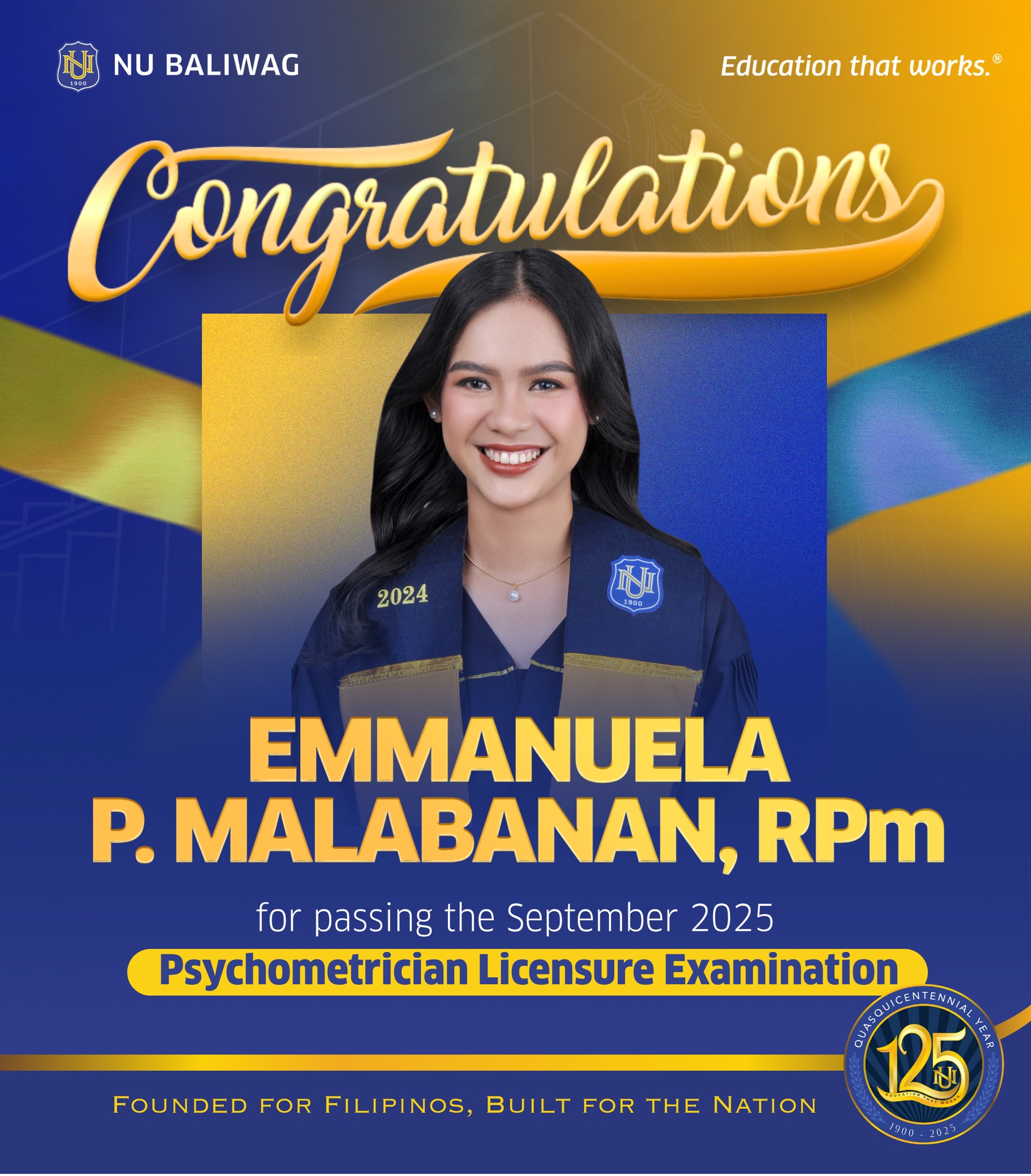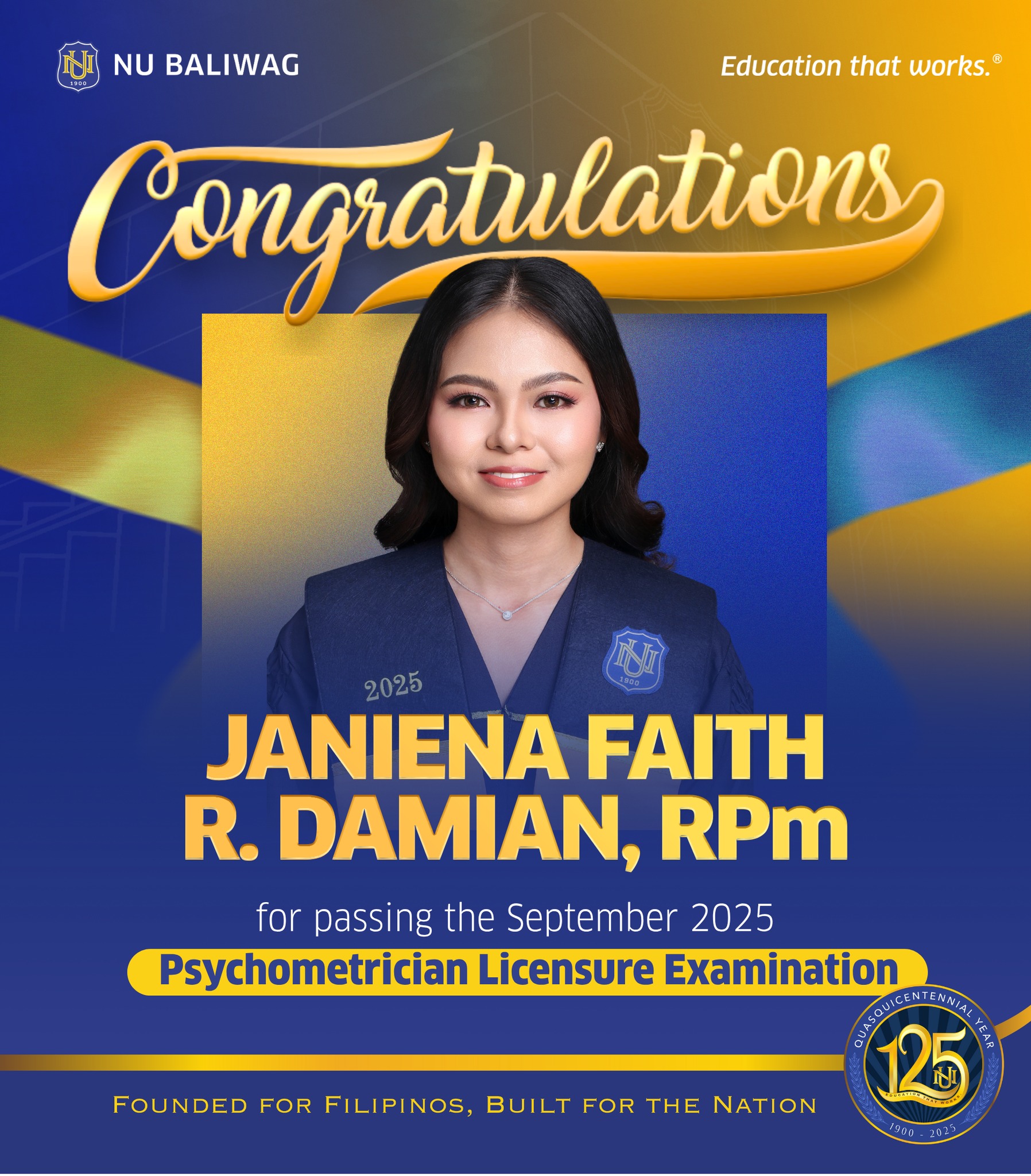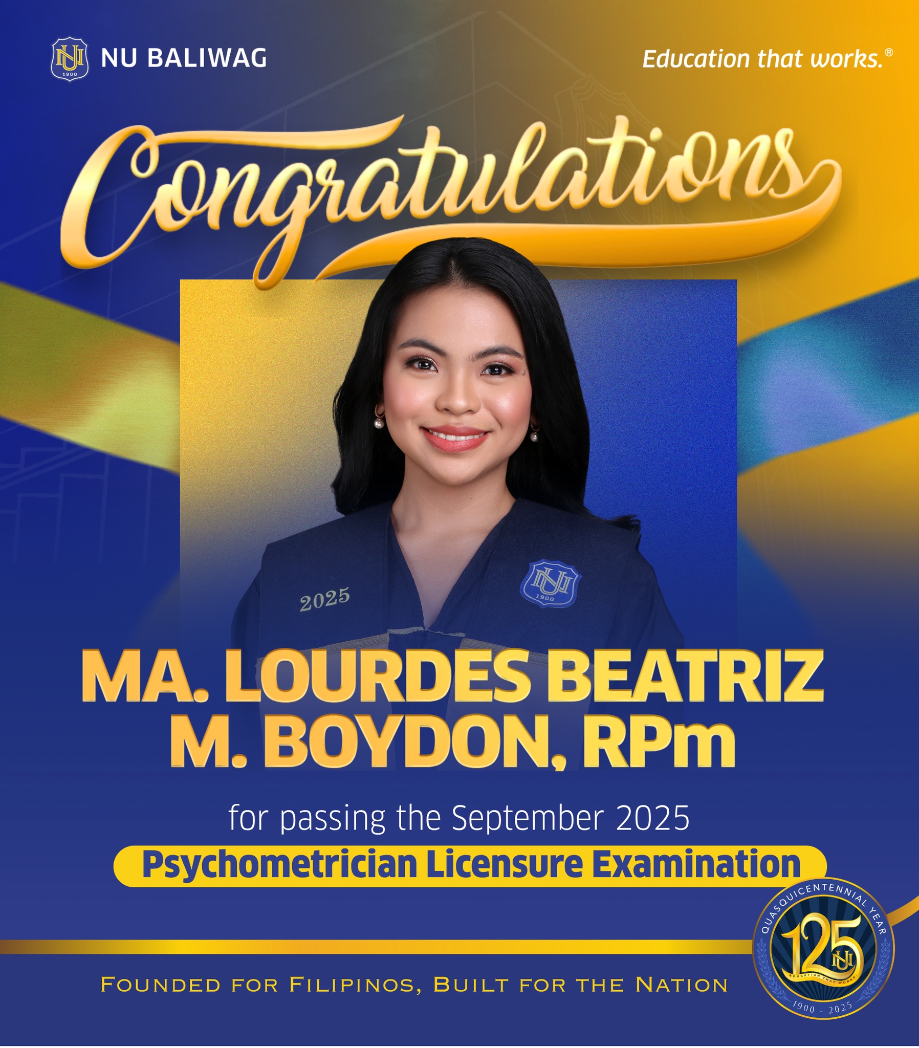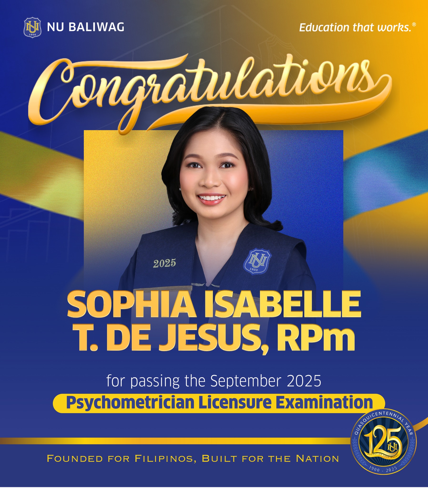 To our newly licensed psychometricians, your hard work and determination have paid off. NU Baliwag celebrates your success and looks forward to the positive impact you will create in your profession.
