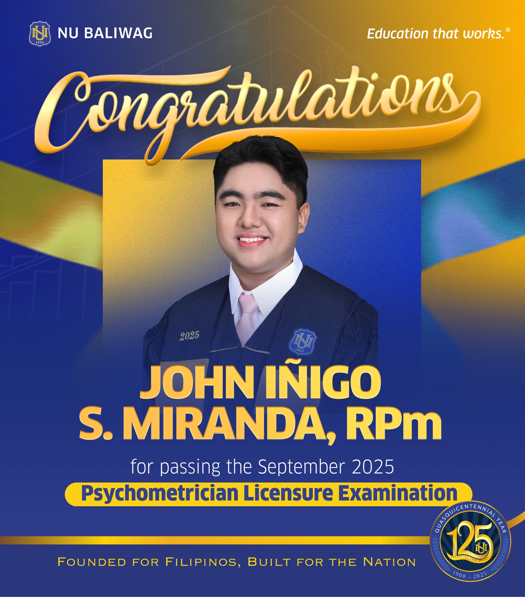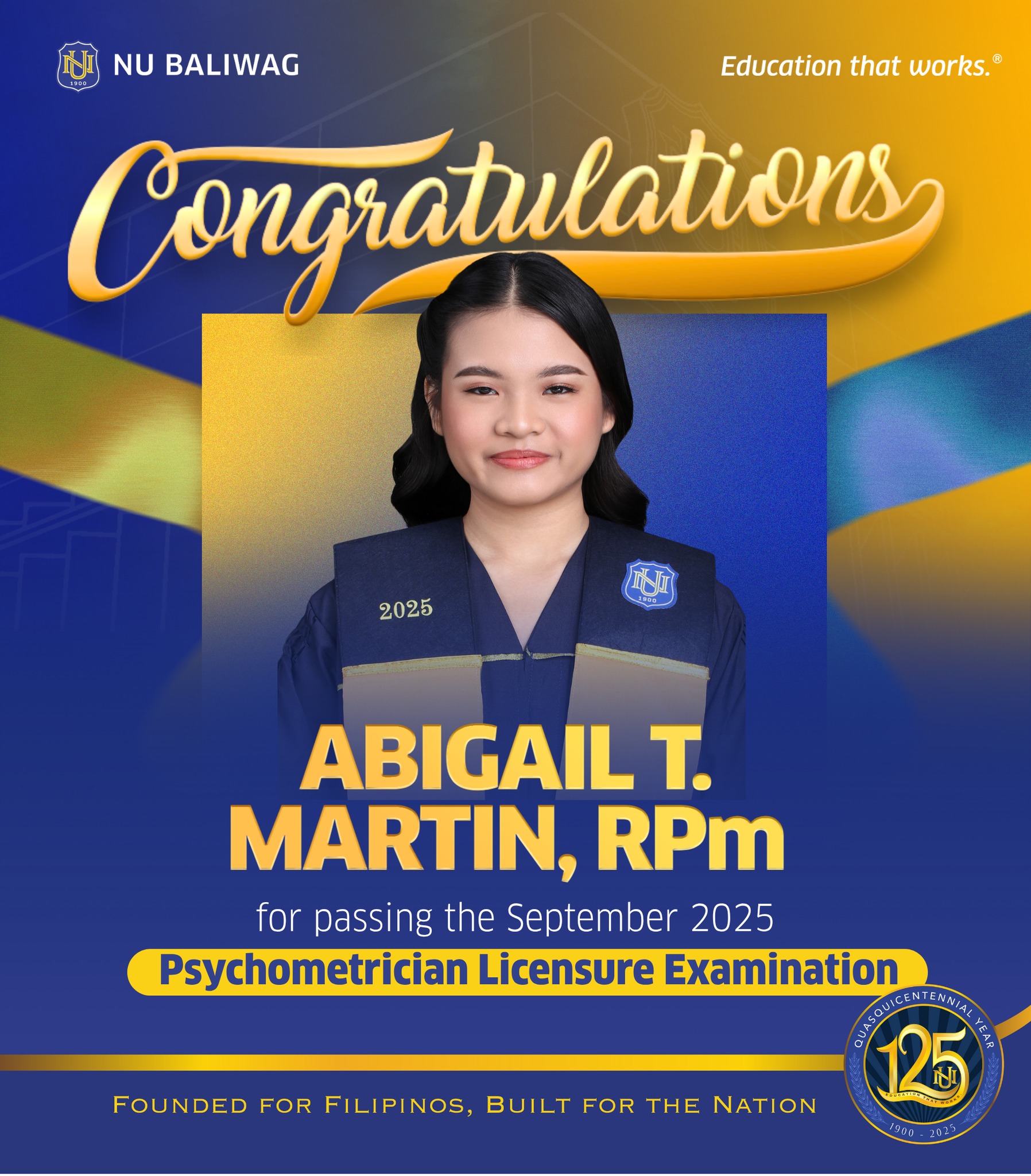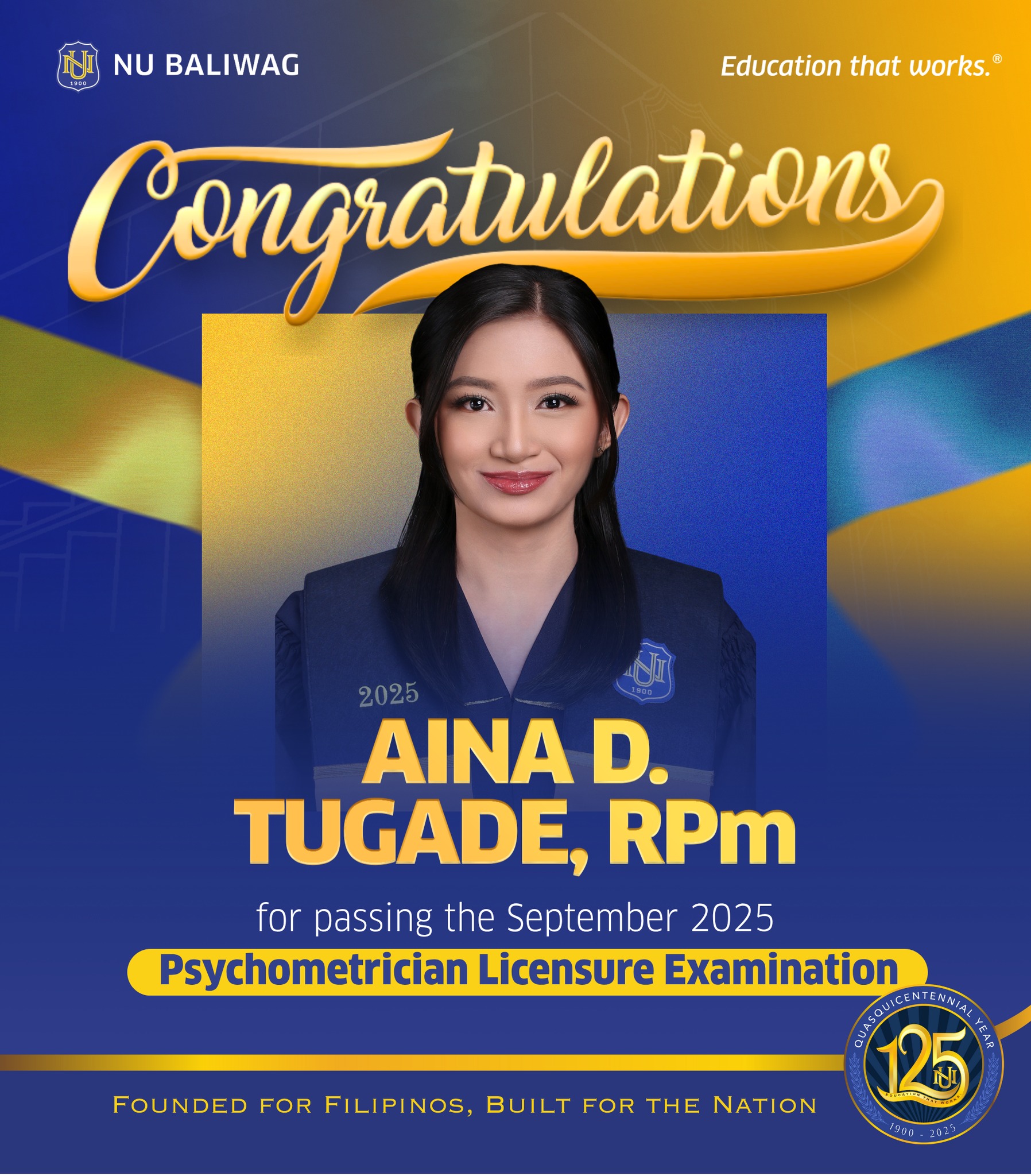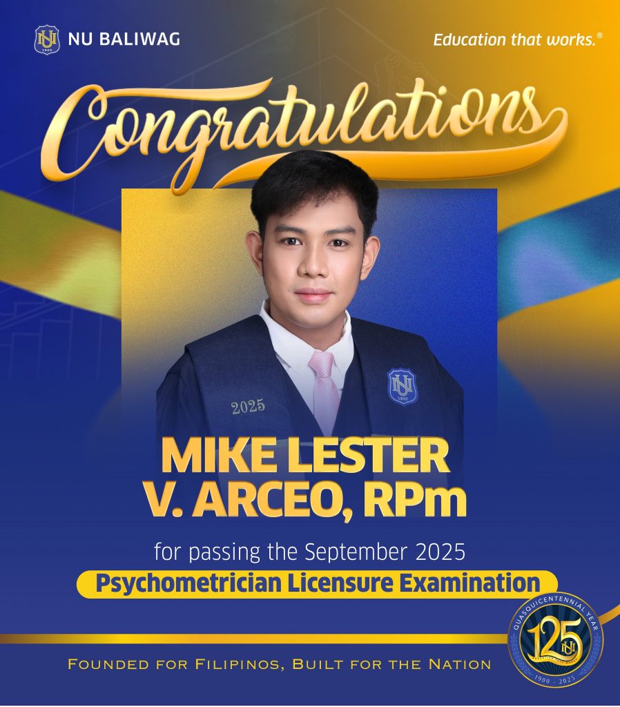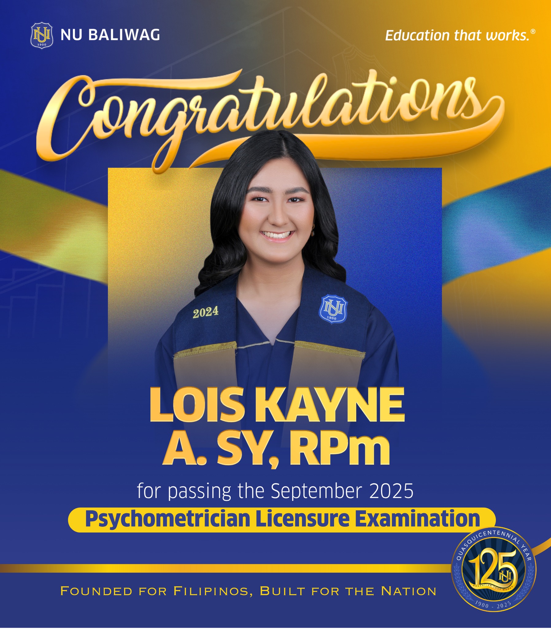 To our newly licensed psychometricians, your hard work and determination have paid off. NU Baliwag celebrates your success and looks forward to the positive impact you will create in your profession.